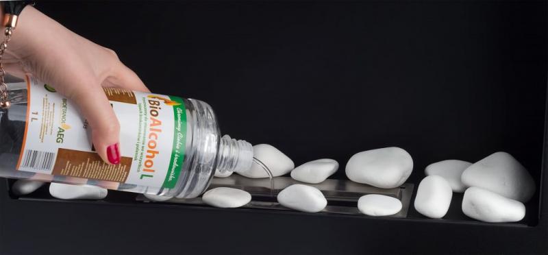 Чтобы заправить биокамин преимущественно используется биоэтанол – спиртосодержащий аналог бензина. Он производится на базе растительного сырья (тростниковый сахар, свекла, пшеница, картофель) и представляет из себя денатурированный этиловый спирт. При сгорании последнего, продуцируется водяной пар, тепло и незначительное количество СО2 (по объему сравнимое с углекислым газом, который выделяется при дыхании). За счет последнего свойства, биокамины являются полностью безопасными и абсолютно безвредными для человека.