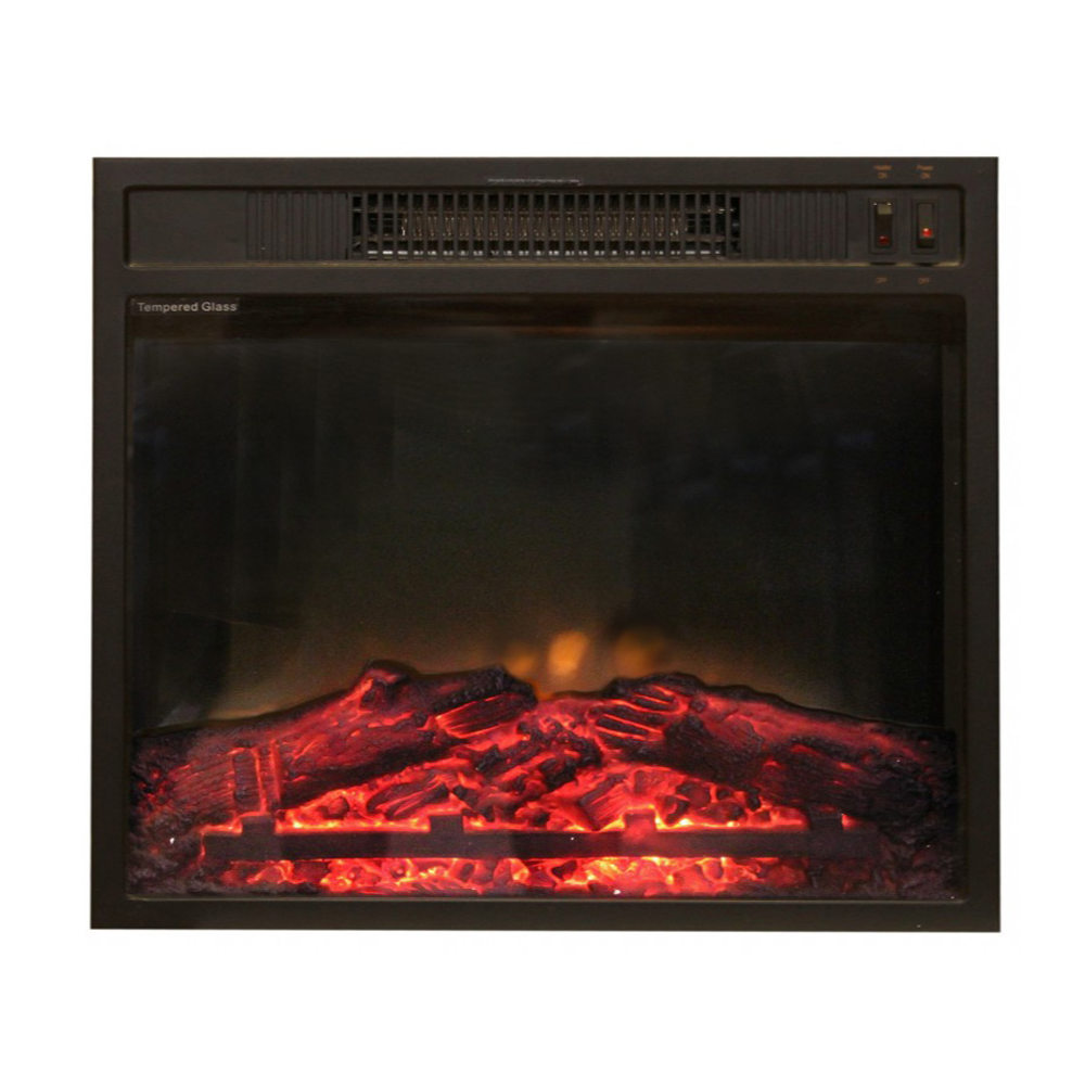 Высота изделия составляет 970 мм, ширина 950 мм, глубина 400 мм, при мощности 1,5 кВт. Привлекает внимание оригинальный дизайн конструкции из МДФ и шпона, в темном цвете дуба антик. Резные пилястры придают камину законченный и привлекательный вид. Предусмотрено два режима обогрева: 750 Вт и 1500 Вт. Недорогая, компактная конструкция с муляжом от сгоревших дров заслуживает отдельного внимания. Завораживающее мерцание, похожее на настоящее пламя, регулирование которого осуществляется за счет специальной встроенной подсветки, выглядит чрезвычайно эффектно. Поэтому электрический камин во многом повторяет работу аналога, для работы которого требуются поленья. Присутствие потрескивания передает звук горящих дров, что усиливает эффект подлинности.