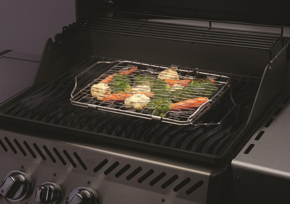 Позвольте себе наслаждаться простотой и удобством приготовления на гриле с помощью складной сетки Napoleon для обжаривания рыбы и овощей.