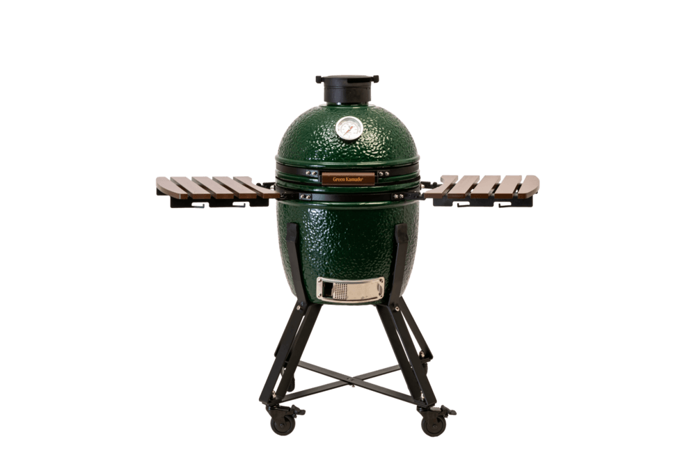 Когда готовишь на kamado, самое важное — чтобы всё было под рукой: щипцы, доска, специи, тарелки. Складные столики GREEN KAMADO для модели M дают удобную рабочую зону прямо рядом с жаром — без беготни на кухню и «куда бы это поставить».