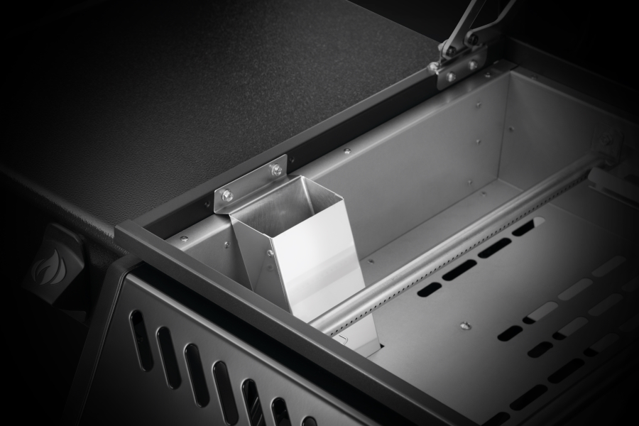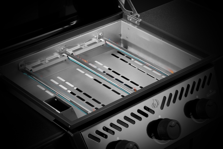 Гриль оснащён тремя горелками общей мощностью 7,65 кВт, что обеспечивает быстрый прогрев и равномерное приготовление. Вы можете выбрать оптимальный уровень температуры для любого блюда — от деликатного тушения до интенсивного обжаривания.