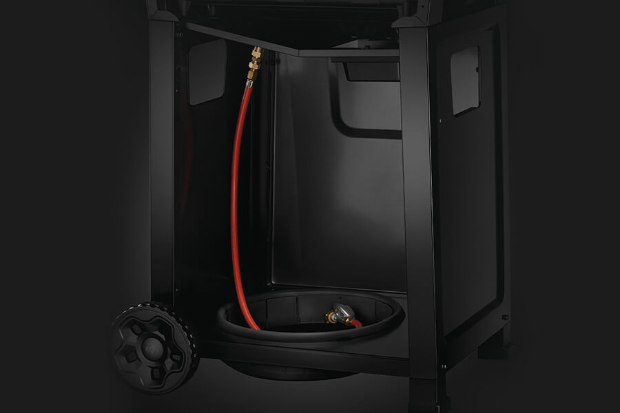 Дверца в основании — это про порядок и эстетику: баллон и аксессуары скрыты, внешний вид аккуратный, а пространство вокруг гриля выглядит опрятно. Плюс приятные мелочи вроде встроенной открывалки — когда всё действительно продумано для отдыха.