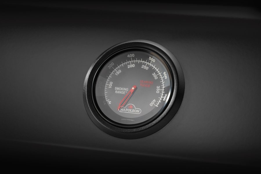 Гриль Napoleon Phantom оснащён встроенным термометром ACCU-PROBE™, который даёт возможность точно отслеживать температуру внутри камеры, не открывая крышку. Это важно для сохранения жара и равномерной готовки — будь то запекание курицы или копчение ребрышек.