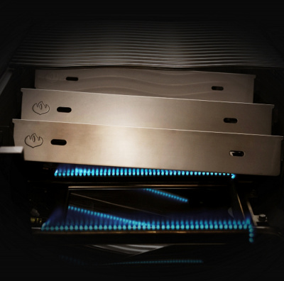 Задняя инфракрасная горелка предназначена для вертела, который можно приобрести отдельно. Эта опция позволяет готовить крупные куски мяса с равномерной прожаркой и эффектной корочкой, сохраняя сочность продукта. Таким образом, гриль превращается в полноценную вертельную печь, подходящую даже для рождественской индейки.