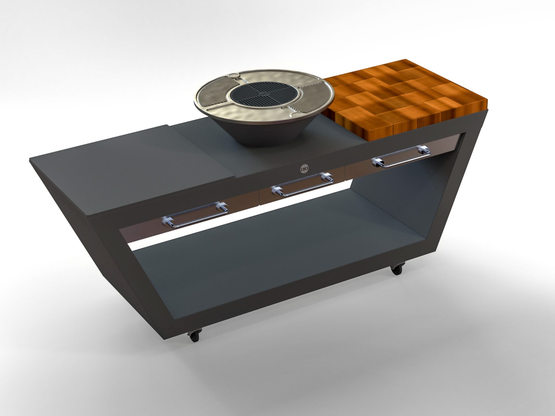 - Просторный и удобный: Разборная трапециевидная подставка с просторным дровником, три ящика для хранения инвентаря и два мини-столика рядом с чашей обеспечивают полноценное рабочее пространство для приготовления даже самых сложных блюд.