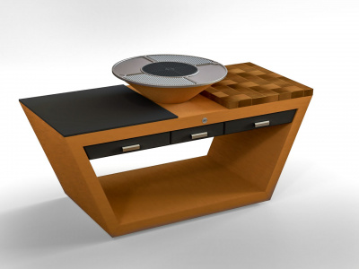 - Просторная и удобная конструкция: Разборная трапециевидная подставка с просторным дровником и тремя выдвижными ящиками для ножей, лопаток, специй обеспечивает полноценное рабочее пространство, а две рабочие поверхности рядом с чашей позволяют приготовить даже самые сложные блюда.