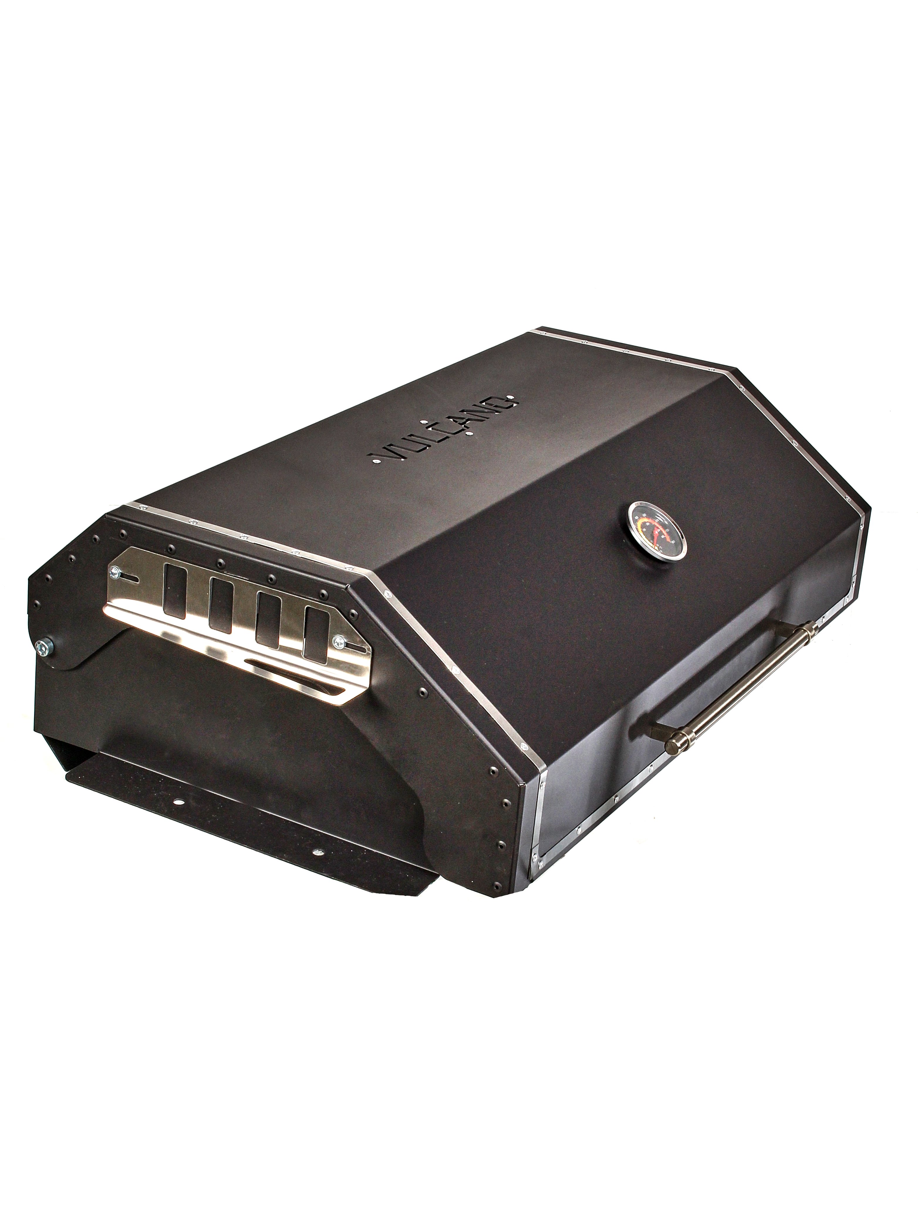 - Крышка гриля с термометром: Позволяет запекать и коптить большие продукты, обеспечивая точный контроль температуры и интенсивности копчения.