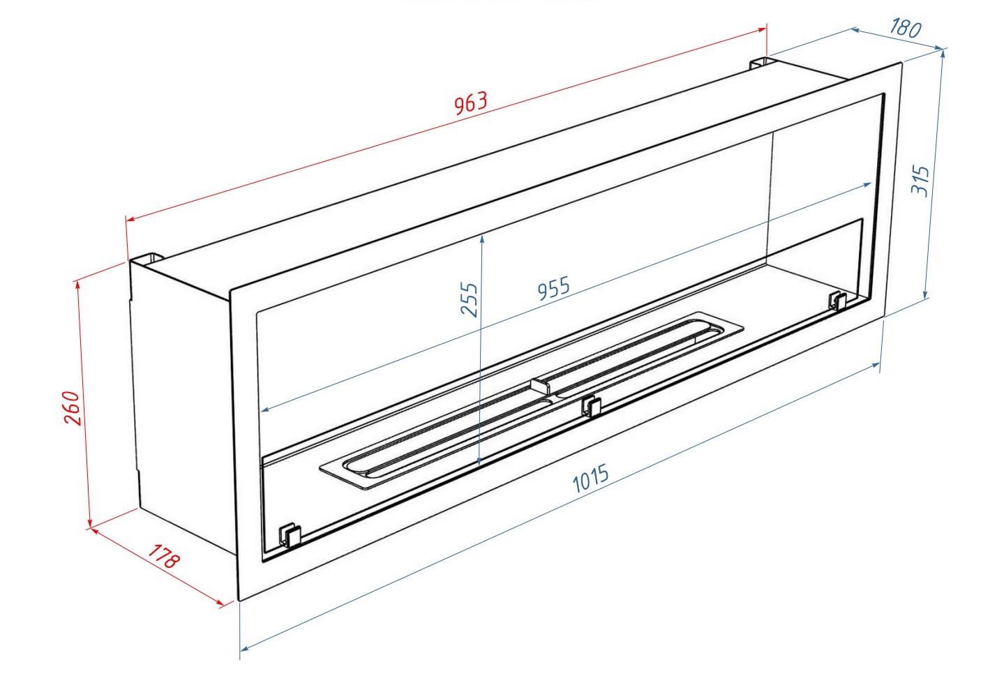 - Эргономичный дизайн: Минималистичный и лаконичный дизайн биокамина позволяет ему легко вписаться в любой современный интерьер. Его панорамный очаг и ширина 1015 мм создают эффектное визуальное расширение пространства.