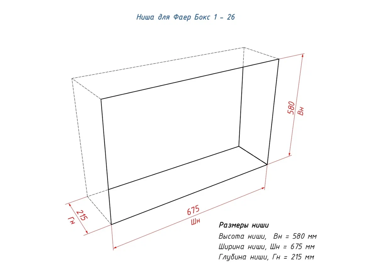 Биокамин рассчитан на установку в глухие ниши толщиной от 225 мм, а размеры ниши (580 × 675 × 215 мм) помогают заранее спланировать проект так, чтобы всё встало ровно и аккуратно.