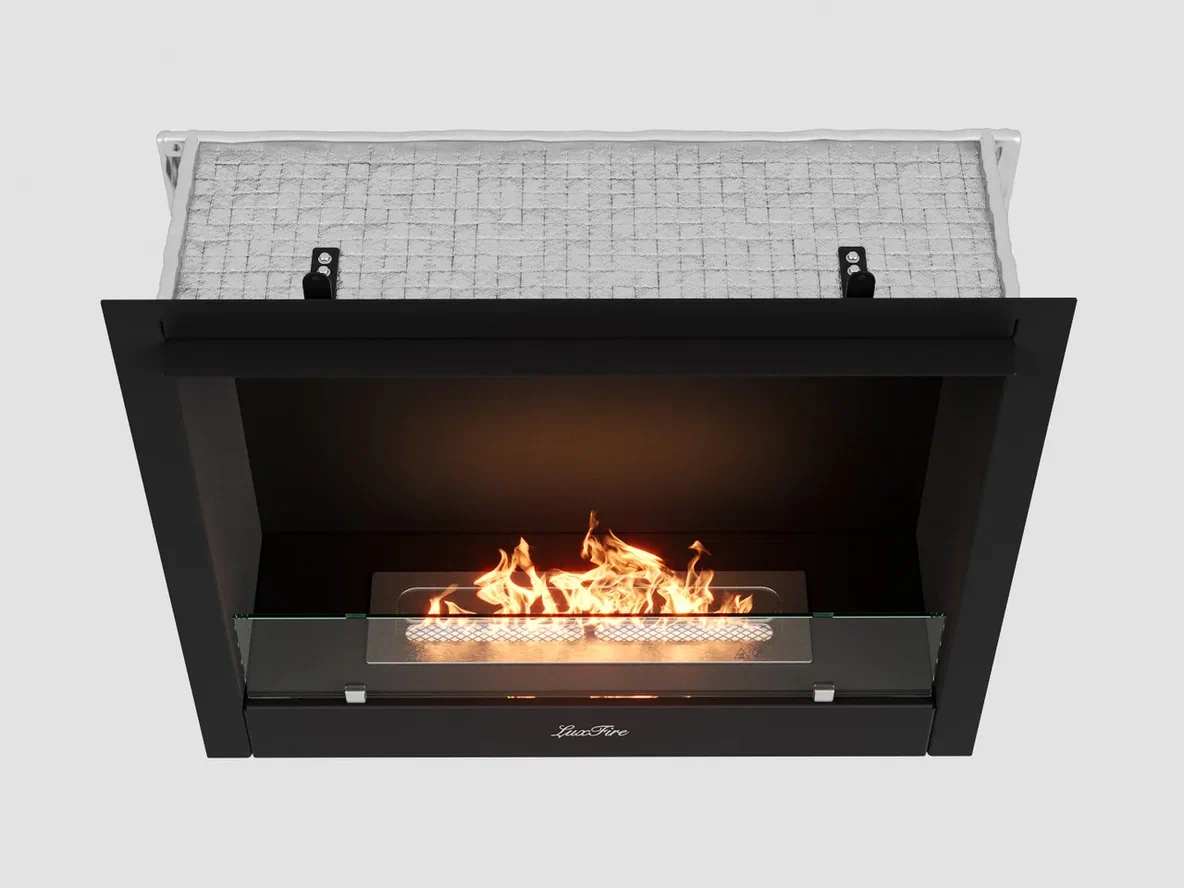 Модель выполнена в классе S и продумана под установку в нишу: внутри предусмотрена термозащита и дополнительный контейнер в основании очага — это снижает нагрев окружающих элементов и добавляет спокойствия в эксплуатации.