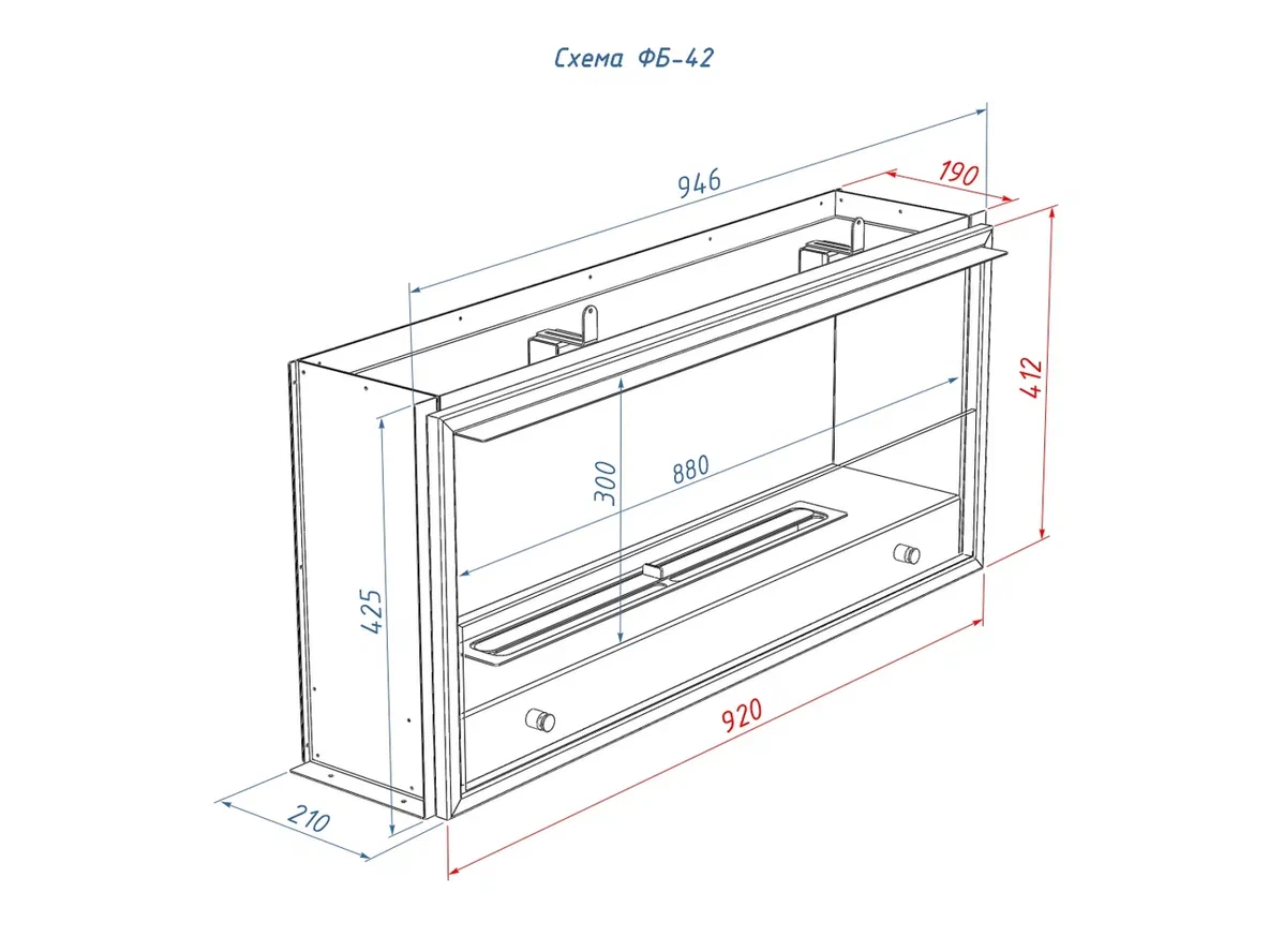 В комплекте вы получаете не «пустую рамку», а полноценный каминный набор: портальный биокамин Lux Fire «Фаер Бокс 42», топливный блок Lux Fire 600 XS, защитное стекло высотой 17 см, термоизолятор, фирменную кочергу.