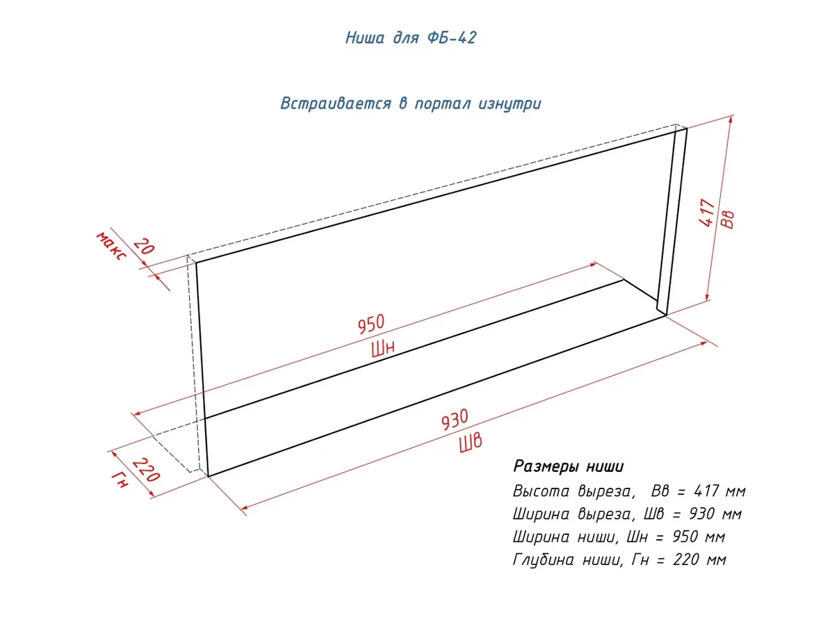 Нишу можно выполнить из привычных и удобных материалов: МДФ, гипсокартон, кирпич, пеноблок, бетон. Это позволяет встроить «Фаер Бокс 42» как в новый проект, так и в уже готовую историю — от декоративной стены до полноценного портала.