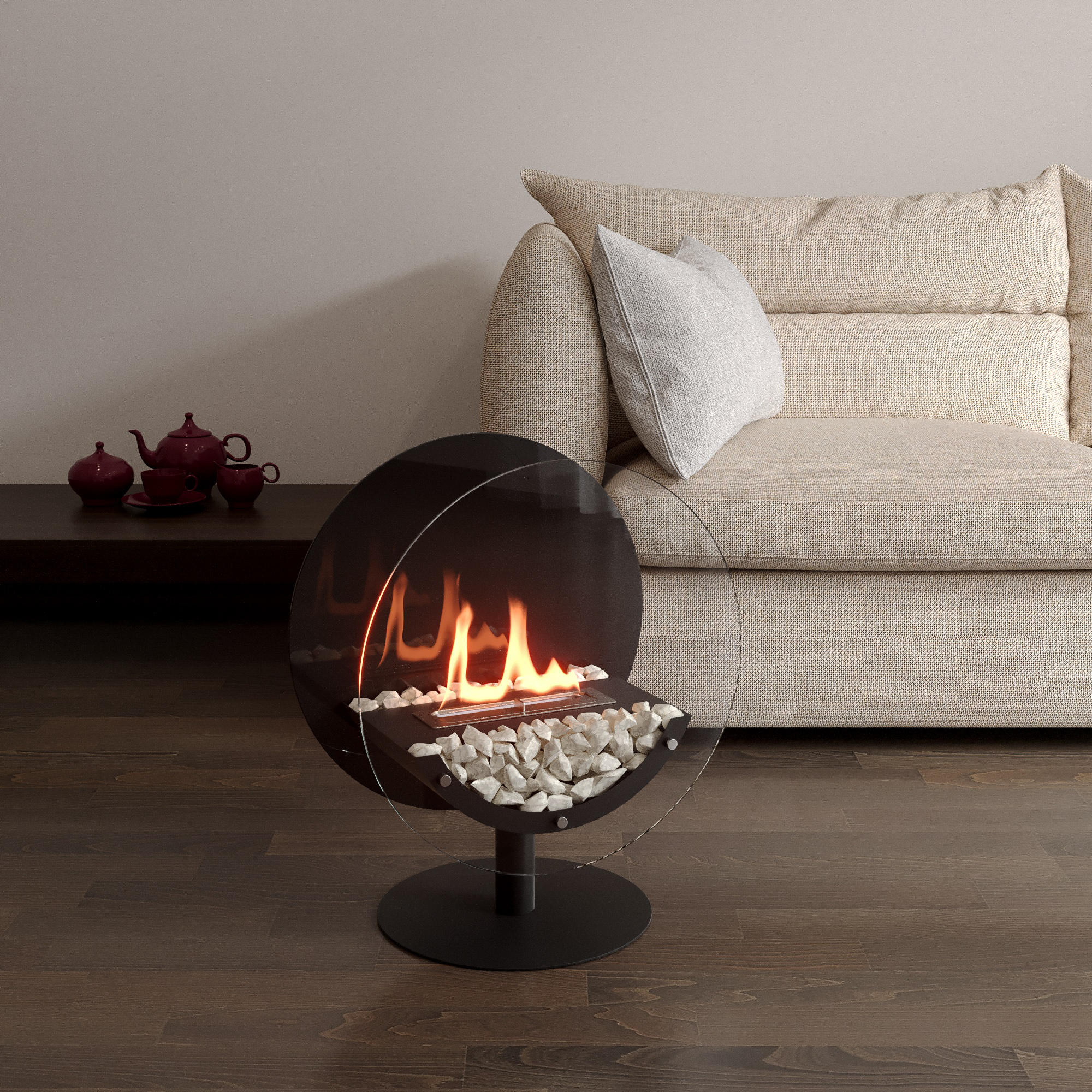 Биокамин весит 18 кг, что делает его устойчивым, но при необходимости его можно перемещать и менять расположение в интерьере. Монтаж не требует специальных навыков.