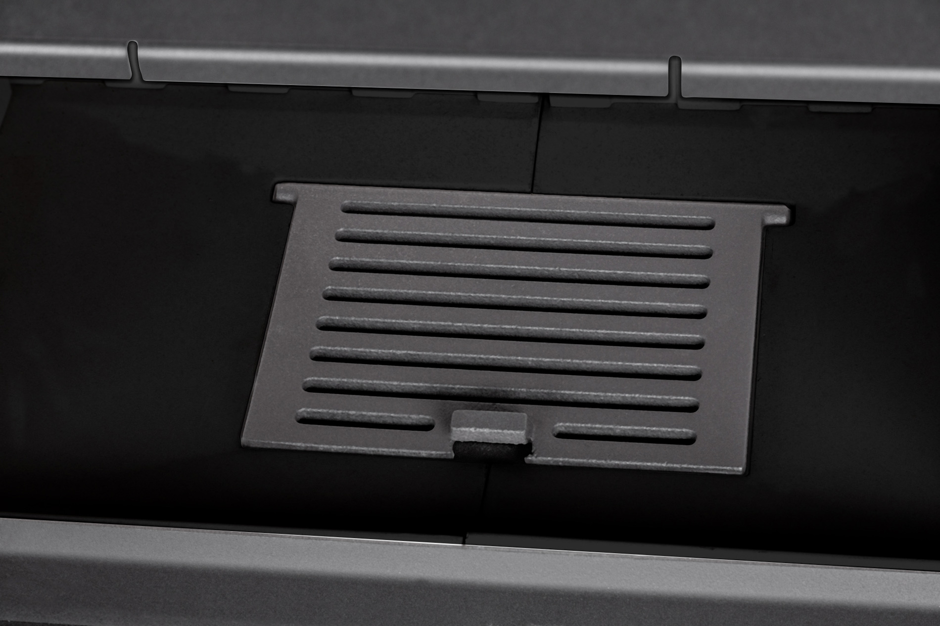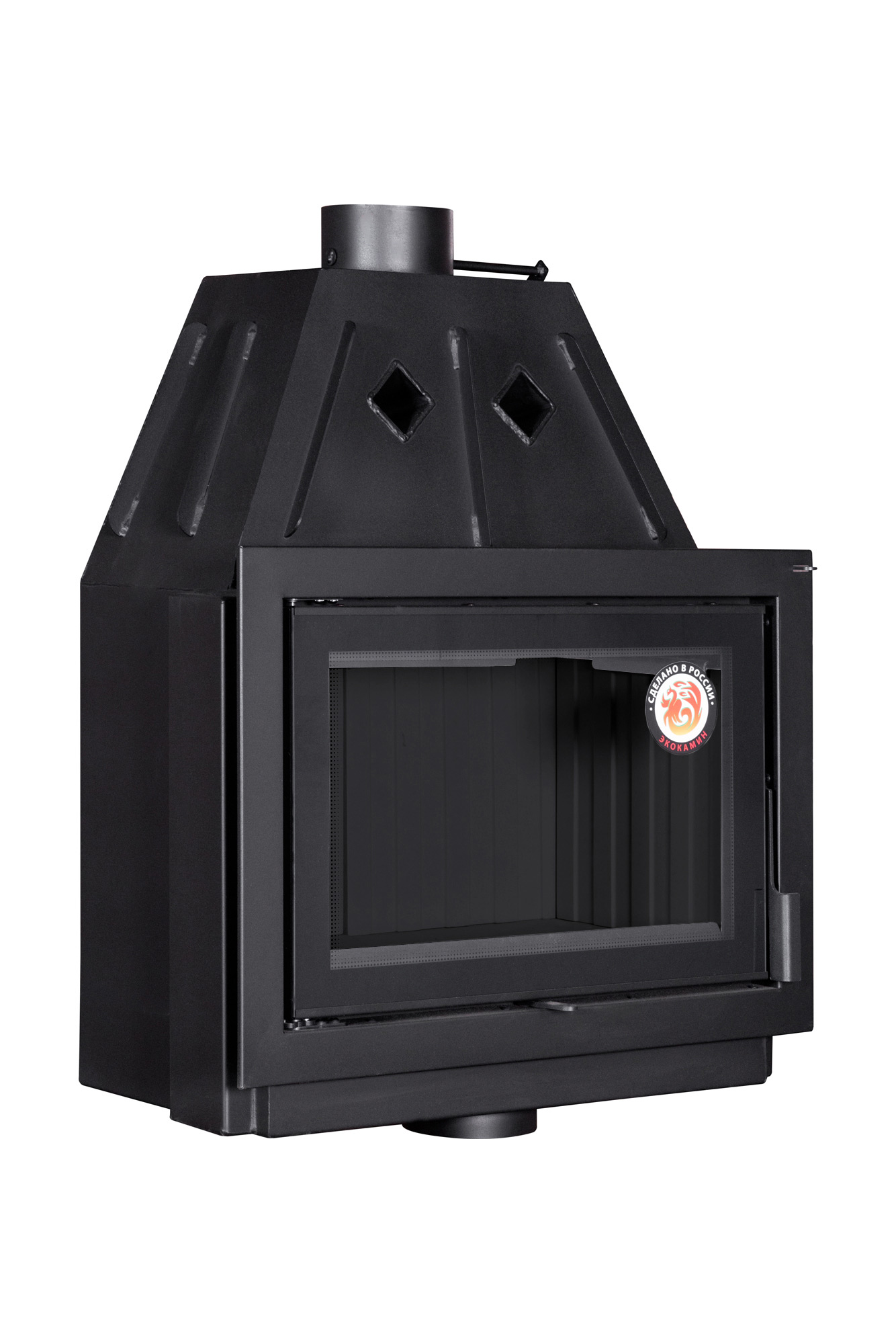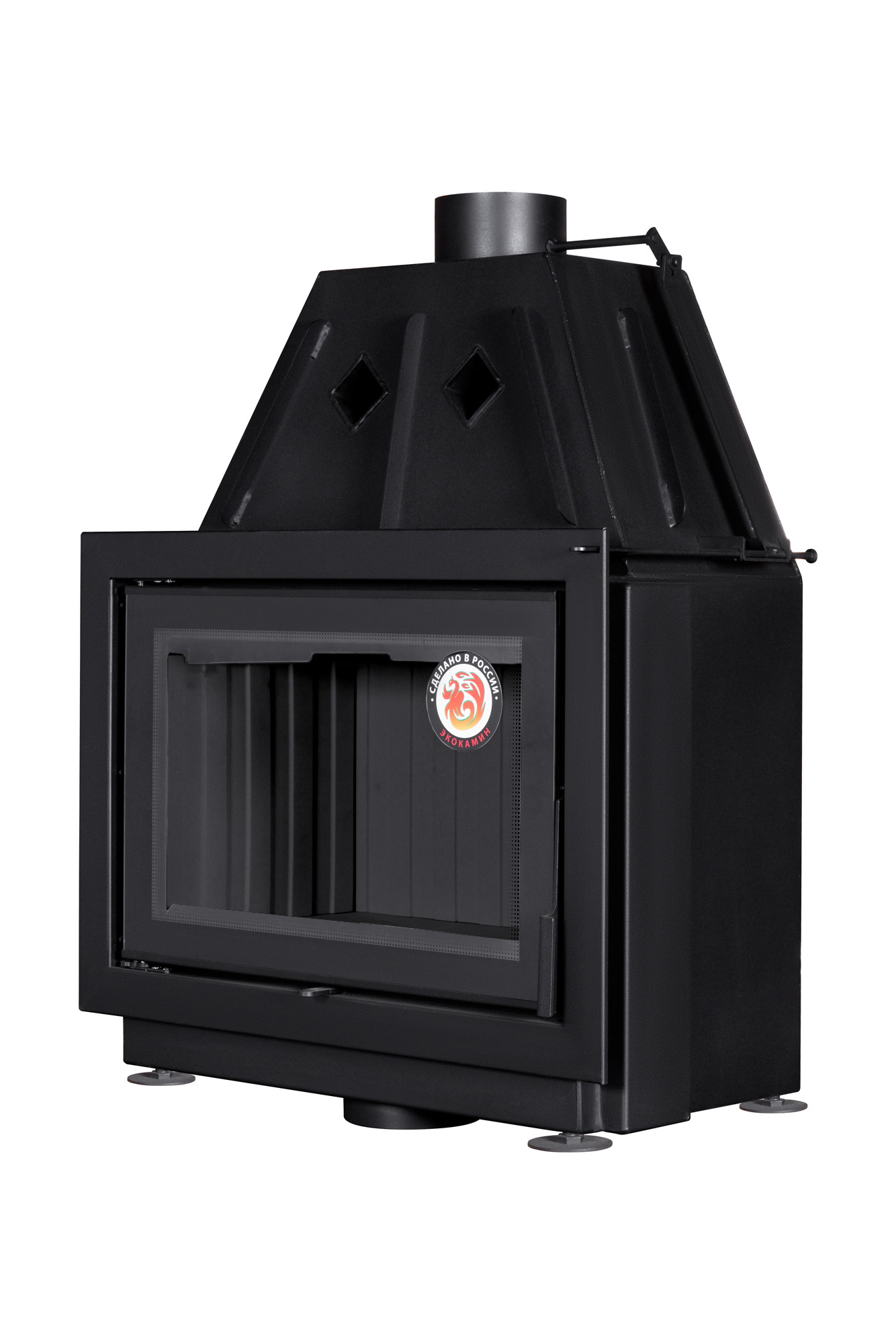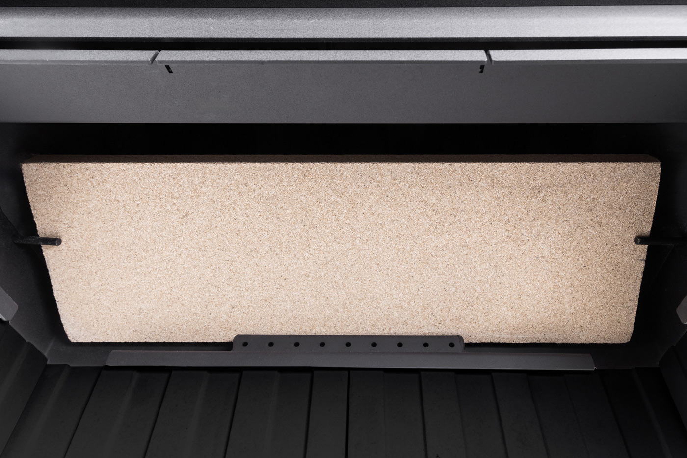 Корпус топки выполнен из прочной стали, а внутренняя футеровка из литиевого шамота черного цвета повышает надежность конструкции и способствует долговечной службе оборудования. Такая комбинация материалов хорошо переносит высокие температуры и ежедневные нагрузки.