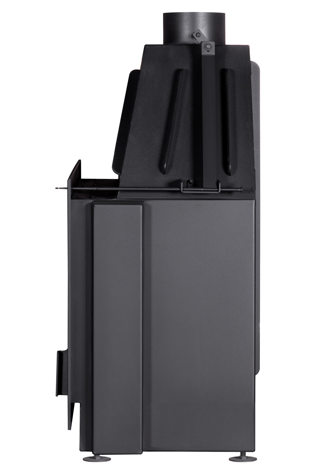 Боковое открывание дверцы делает использование топки удобным в повседневной жизни, а регулируемые по высоте ножки помогают проще адаптировать установку под конкретные условия монтажа. Встроенная шиберная заслонка на гибкой тяге добавляет удобства в управлении тягой и режимом работы.