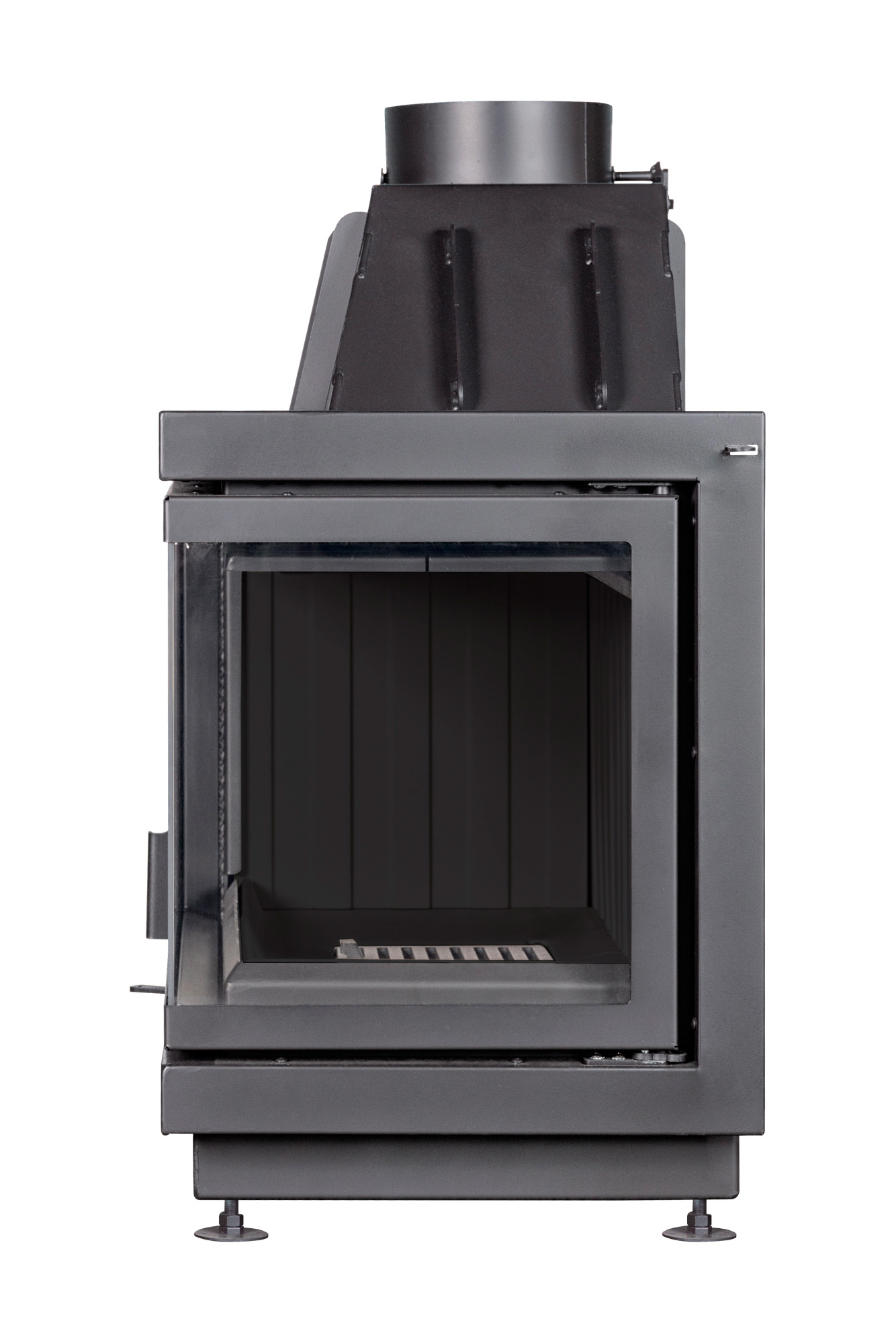 Топить камин можно как с открытой, так и с закрытой дверцей, но именно в закрытом режиме достигаются лучшая эффективность и более высокий уровень безопасности. Боковое открывание дверцы делает эксплуатацию удобной, а система чистого стекла помогает дольше сохранять аккуратный внешний вид и красивый обзор пламени.
