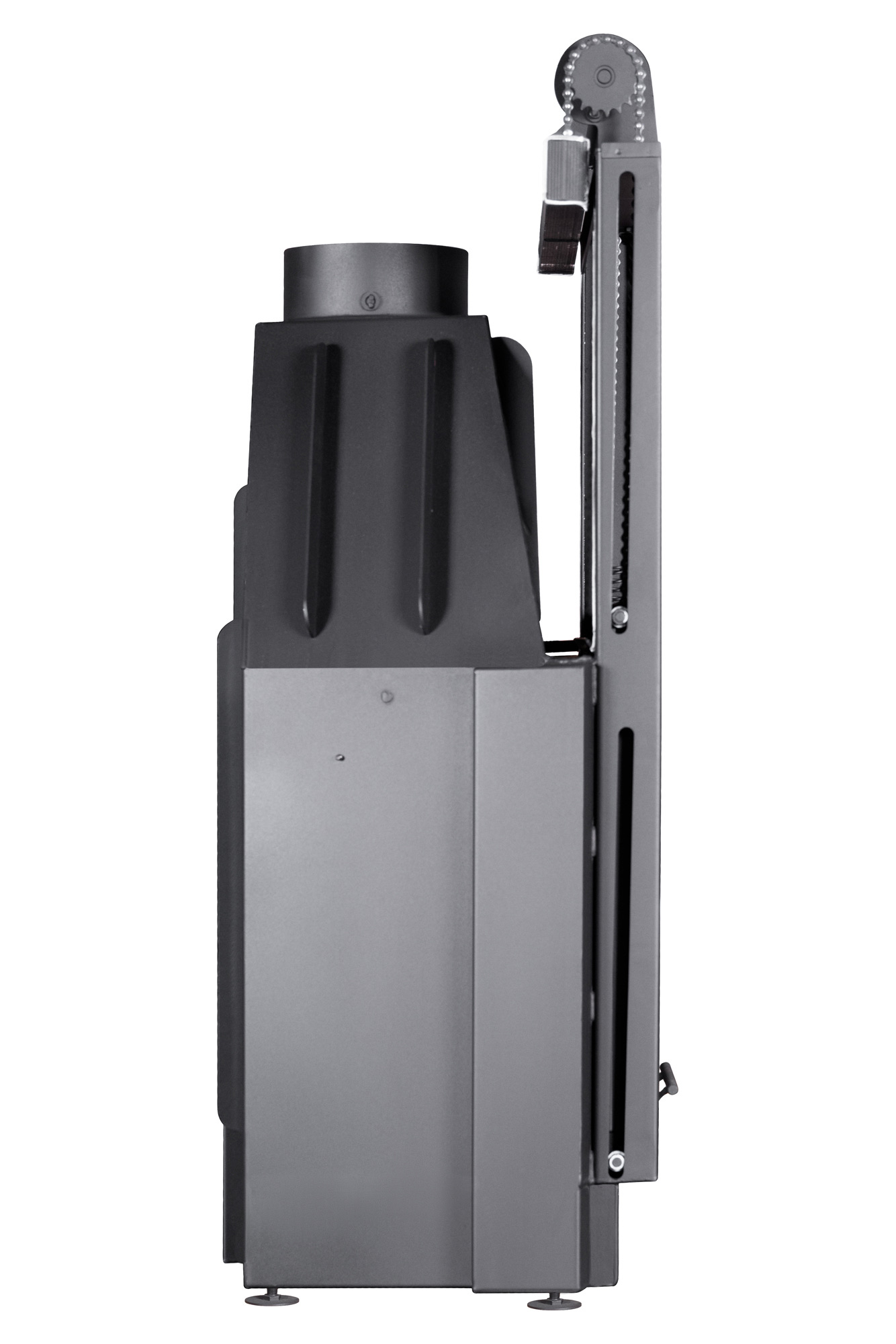Одним из главных преимуществ модели является дверца, открывающаяся вверх. Благодаря системе с контргрузом пользоваться камином особенно удобно: доступ к топочной камере становится более комфортным, а сам процесс эксплуатации выглядит современно, аккуратно и действительно впечатляет.