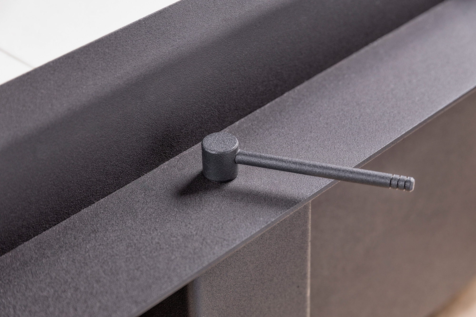 Бесшумная тросовая система с противовесом обеспечивает плавное открывание дверцы вверх, упрощая закладку дров и обслуживание топки. Все элементы конструкции рассчитаны на многолетнее использование без деформации.
