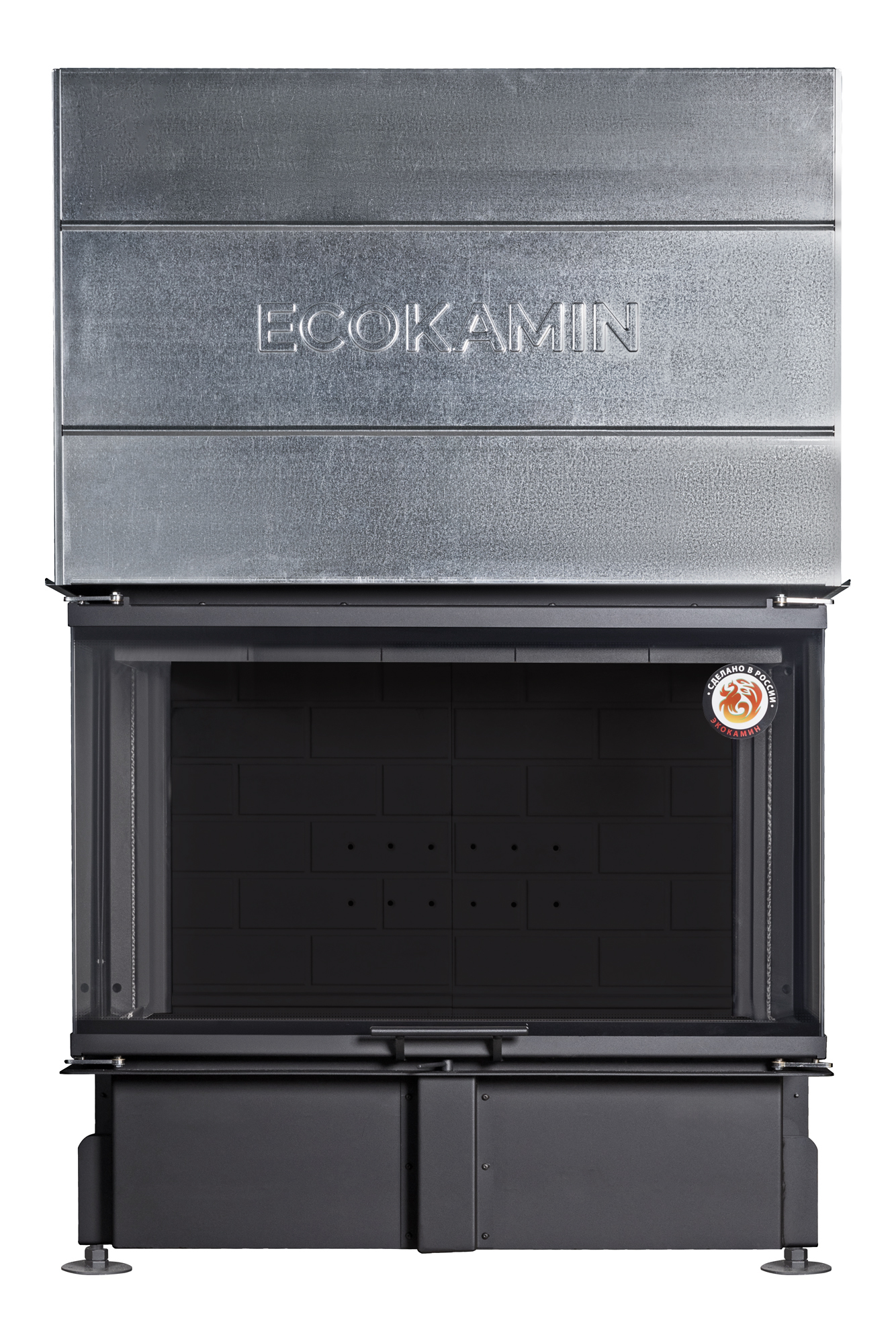 Каминная топка Экокамин ДЕЛЬТА 1000PВ три стекла принтинг подовое горение черный шамот