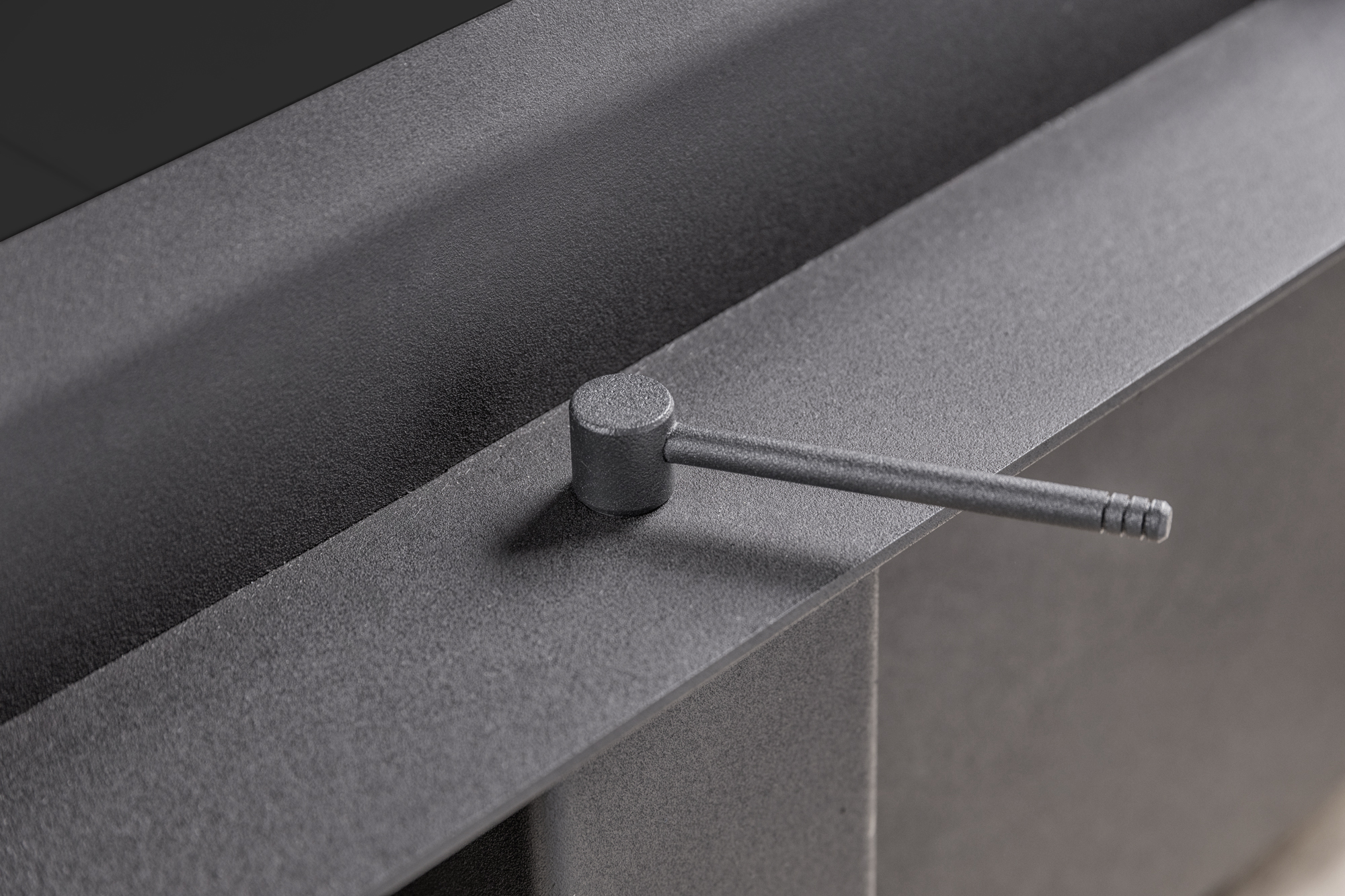 Под чугунной колосниковой решёткой расположен вместительный зольный ящик, который легко вынимается для очистки. Регулируемые по высоте ножки позволяют точно выставить топку при установке.