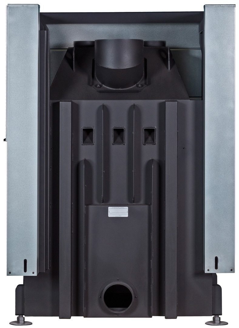 Под чугунной колосниковой решёткой расположен удобный зольный ящик для сбора золы, который легко вынимается. Регулируемые по высоте ножки позволяют точно выставить топку при монтаже.