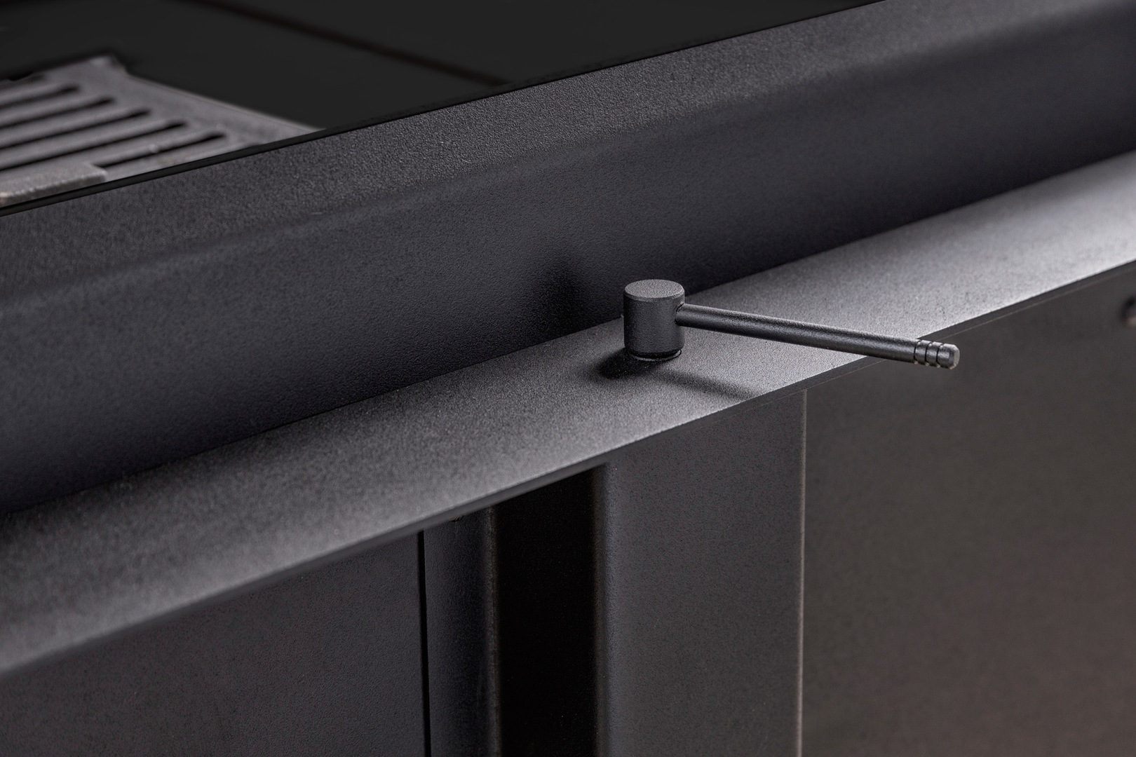 Бесшумная тросовая система с противовесом обеспечивает плавное и лёгкое открывание дверцы вверх. Благодаря продуманной конструкции загрузка дров и обслуживание топки максимально просты.
