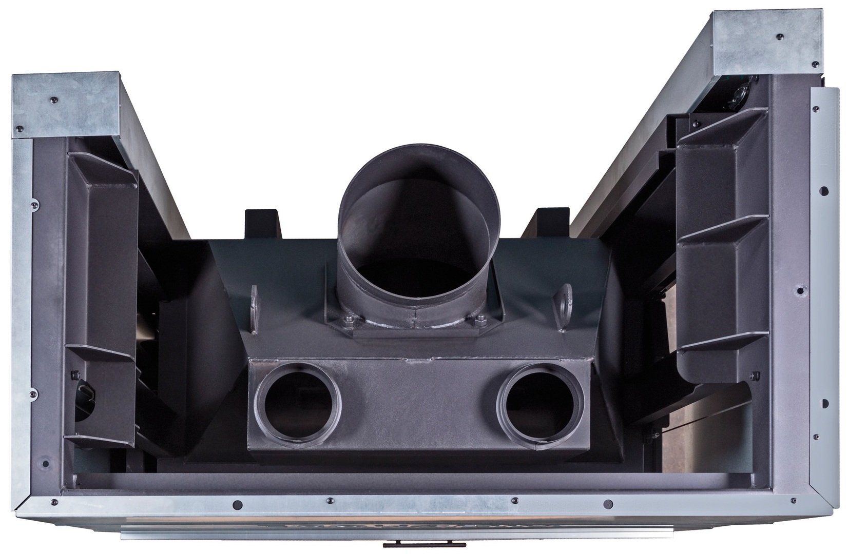 Система тепловой разводки с двумя патрубками диаметром 125 мм позволяет распределять тёплый воздух по дому, создавая комфортный микроклимат даже в больших помещениях.