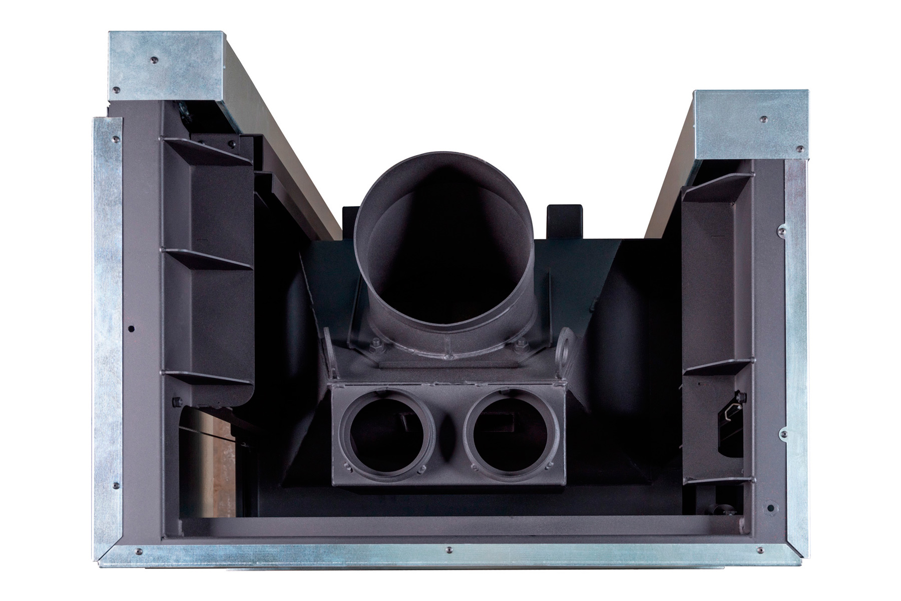 Футеровка из литьевого шамота черного цвета защищает внутренние элементы от перегрева, продлевает срок службы оборудования и обеспечивает стабильное горение даже при длительной эксплуатации.