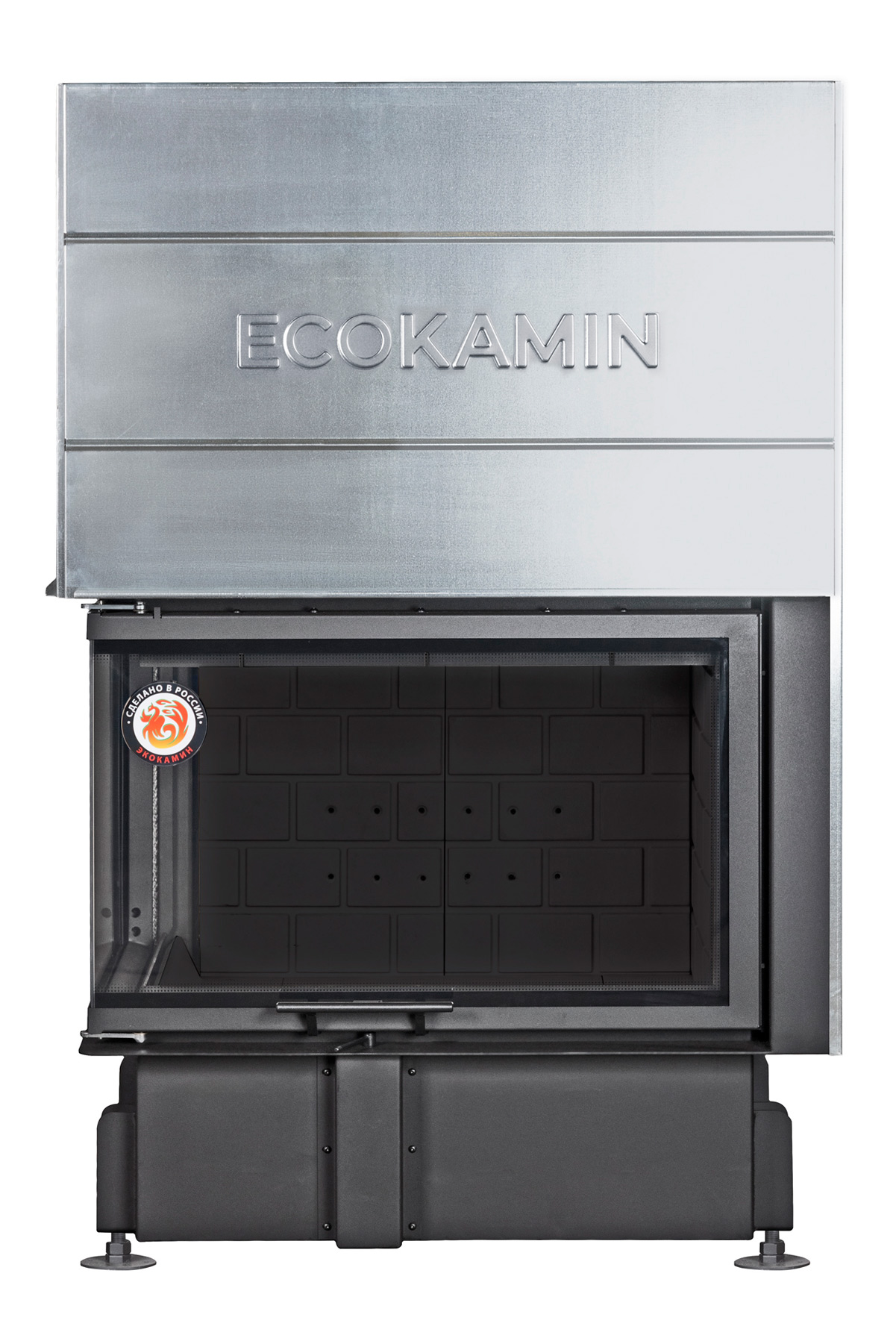 Каминная топка Экокамин ДЕЛЬТА 800LРВ два стекла левая принтинг подовое горение черный шамот