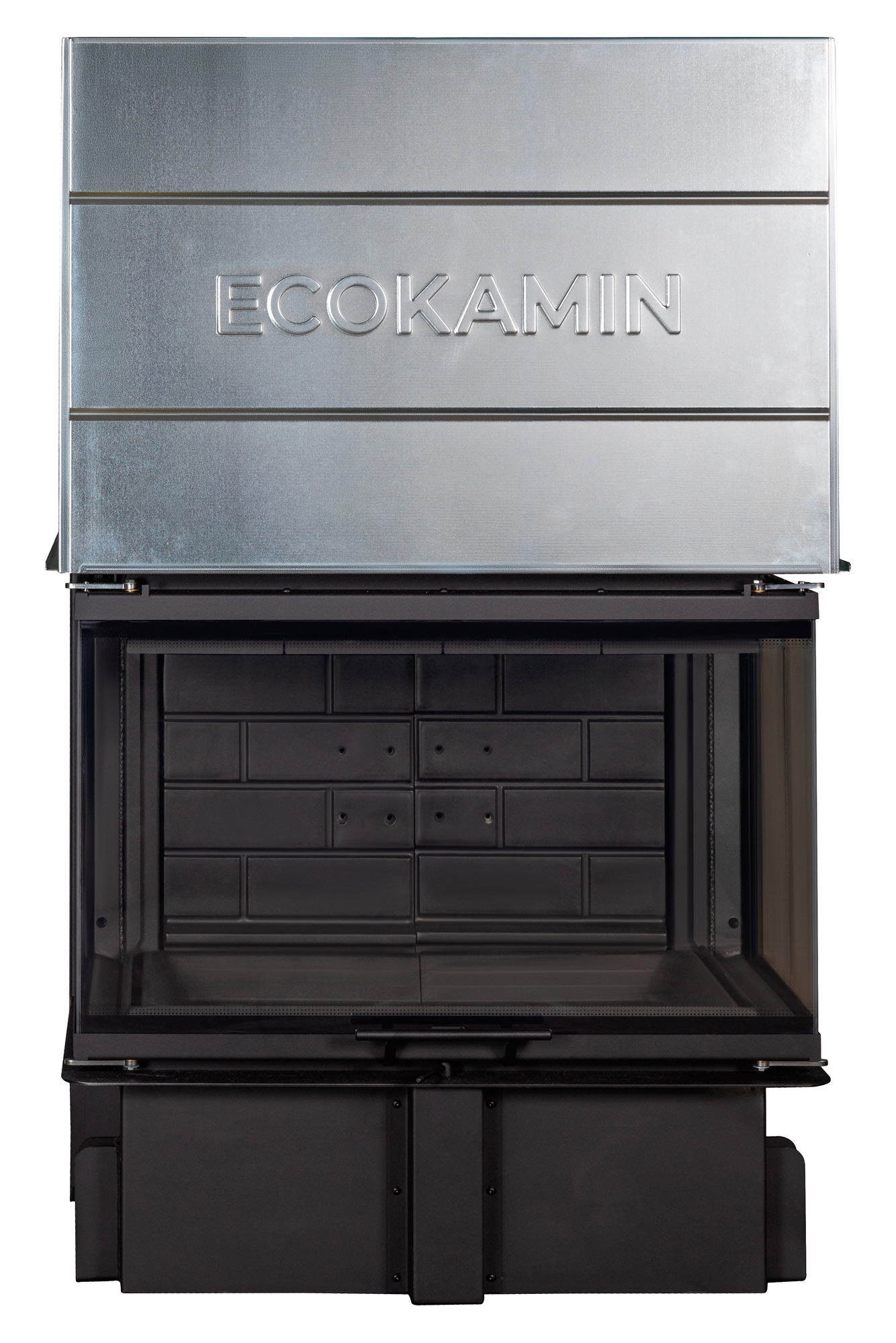 Каминная топка Экокамин Дельта 800PВ три стекла принтинг подовое горение черный шамот
