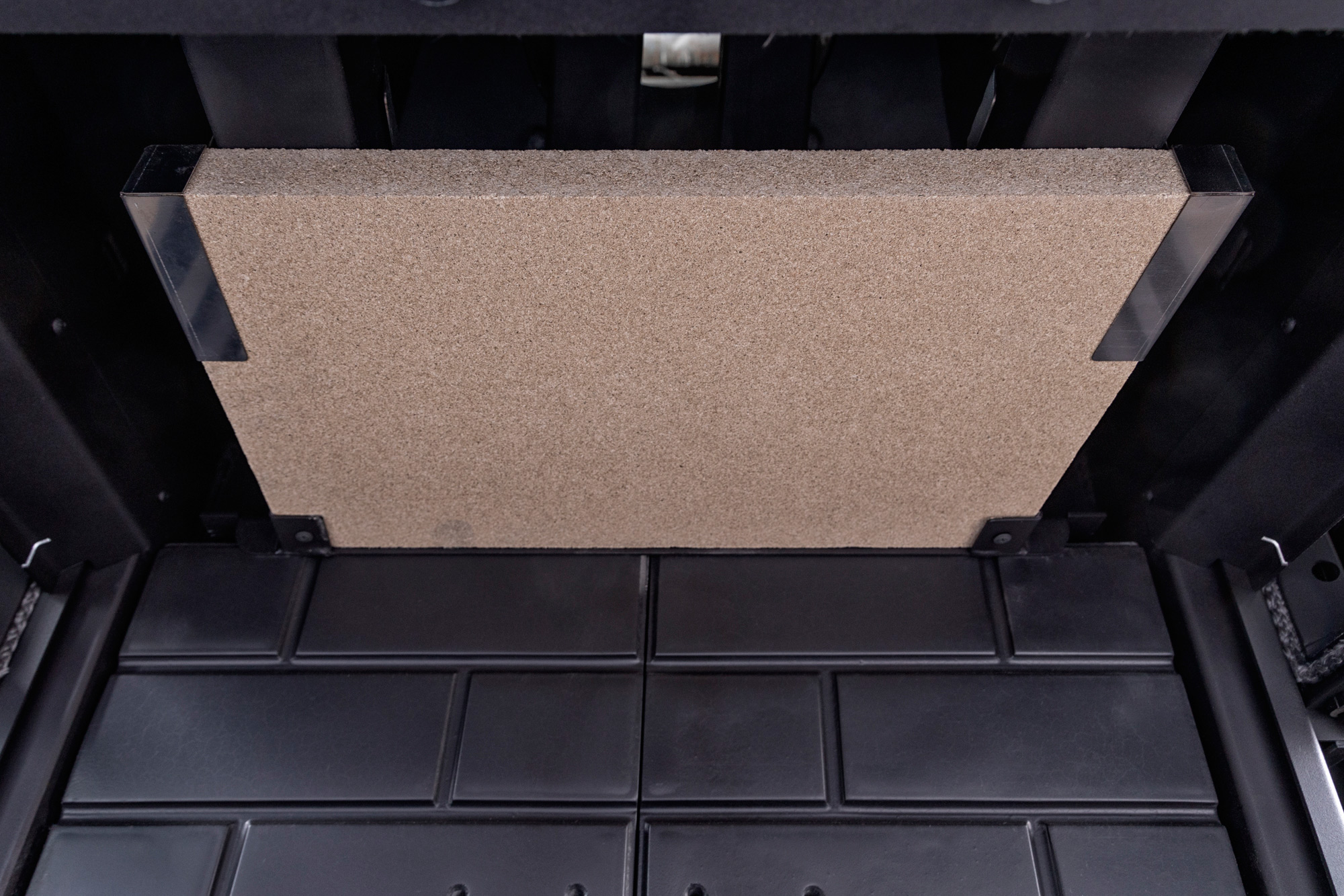 Футеровка из литого шамота защищает стенки камеры от перегрева, а возможность выбора цвета — черный или бежевый — позволяет адаптировать внутреннее оформление под интерьер.