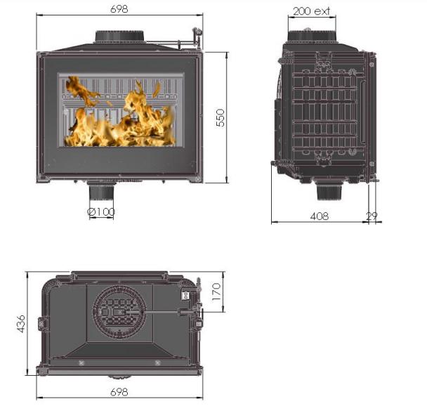 - Регулировка горения: Съемная тяговая заслонка (шибер) облегчает регулировку процесса горения и упрощает прочистку дымохода. Возможность подключения воздуха извне обеспечивает оптимальные условия сгорания.