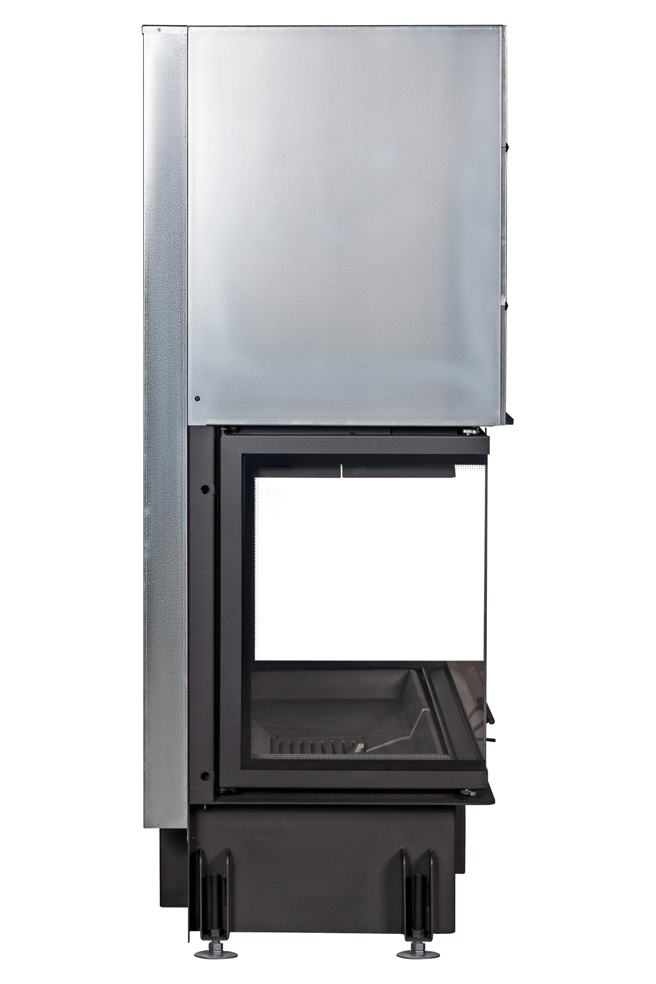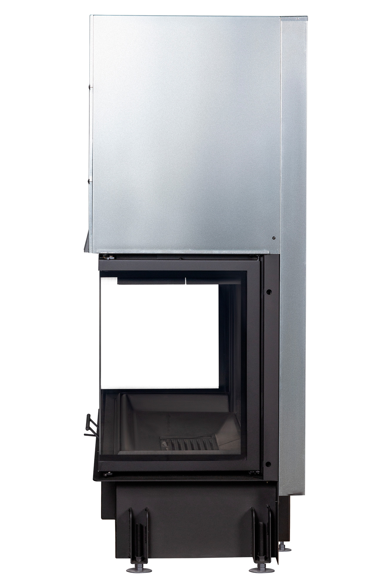 Жаропрочное стекло из Японии выдерживает температуру до 750°C, обеспечивая надежную защиту и безопасность использования. Литьевой шамот черного цвета защищает металлические элементы от перегрева, продлевая срок службы топки. Большой зольный ящик под чугунной колосниковой решеткой легко вынимается, упрощая процесс уборки и обслуживания. Регулируемые по высоте ножки позволяют легко установить топку по уровню при монтаже.