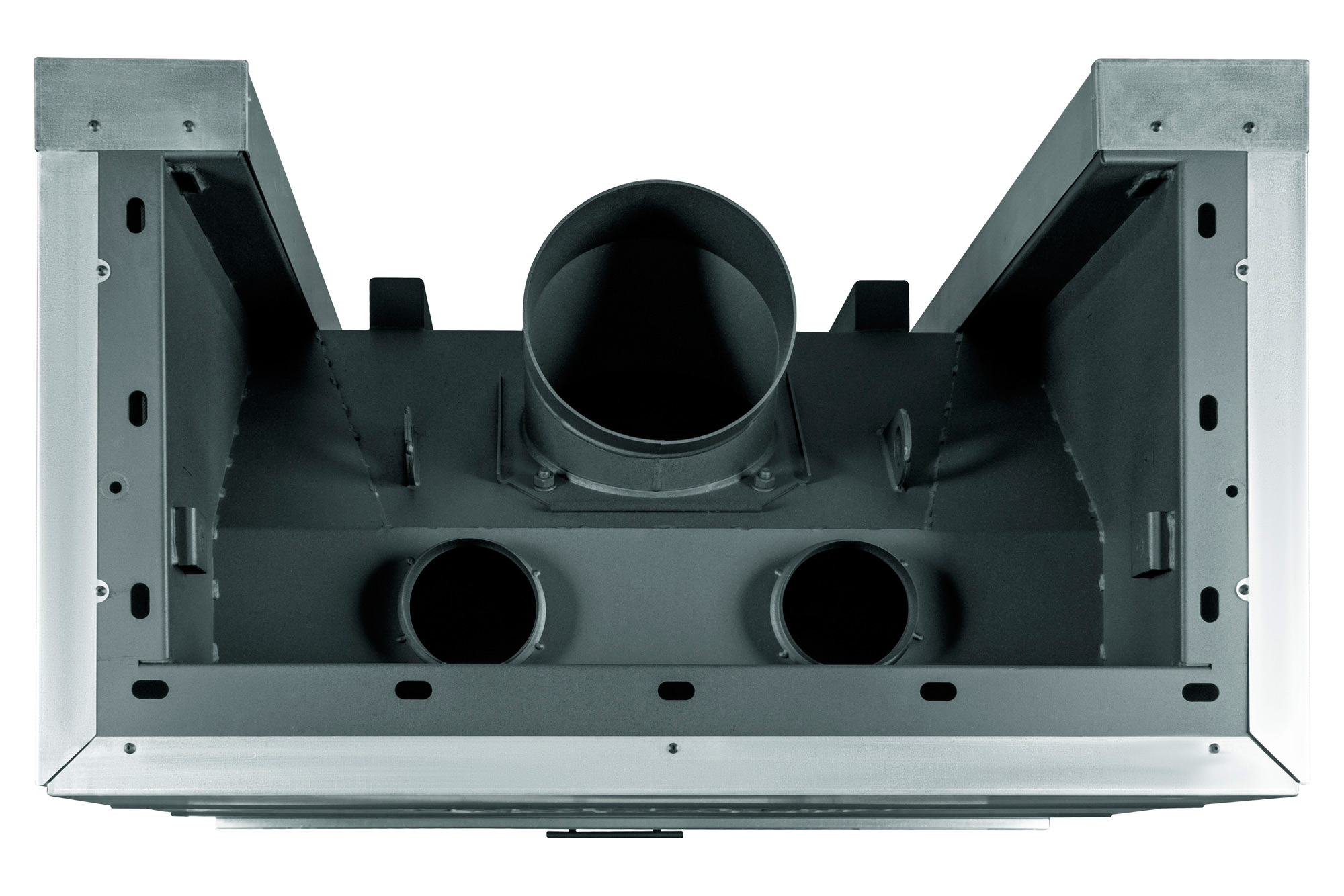 Каминная топка оснащена системой «чистое стекло», которая регулируется заслонкой, предотвращая накопление сажи и сохраняя прозрачность стекла. Встроенная тросовая система с противовесом и жаропрочными подшипниками обеспечивает бесшумное и легкое открытие дверцы, позволяя с удобством закладывать дрова. А благодаря регулировке подачи воздуха извне и системе тепловой разводки, вы сможете контролировать процесс горения и направлять тепло в смежные комнаты.