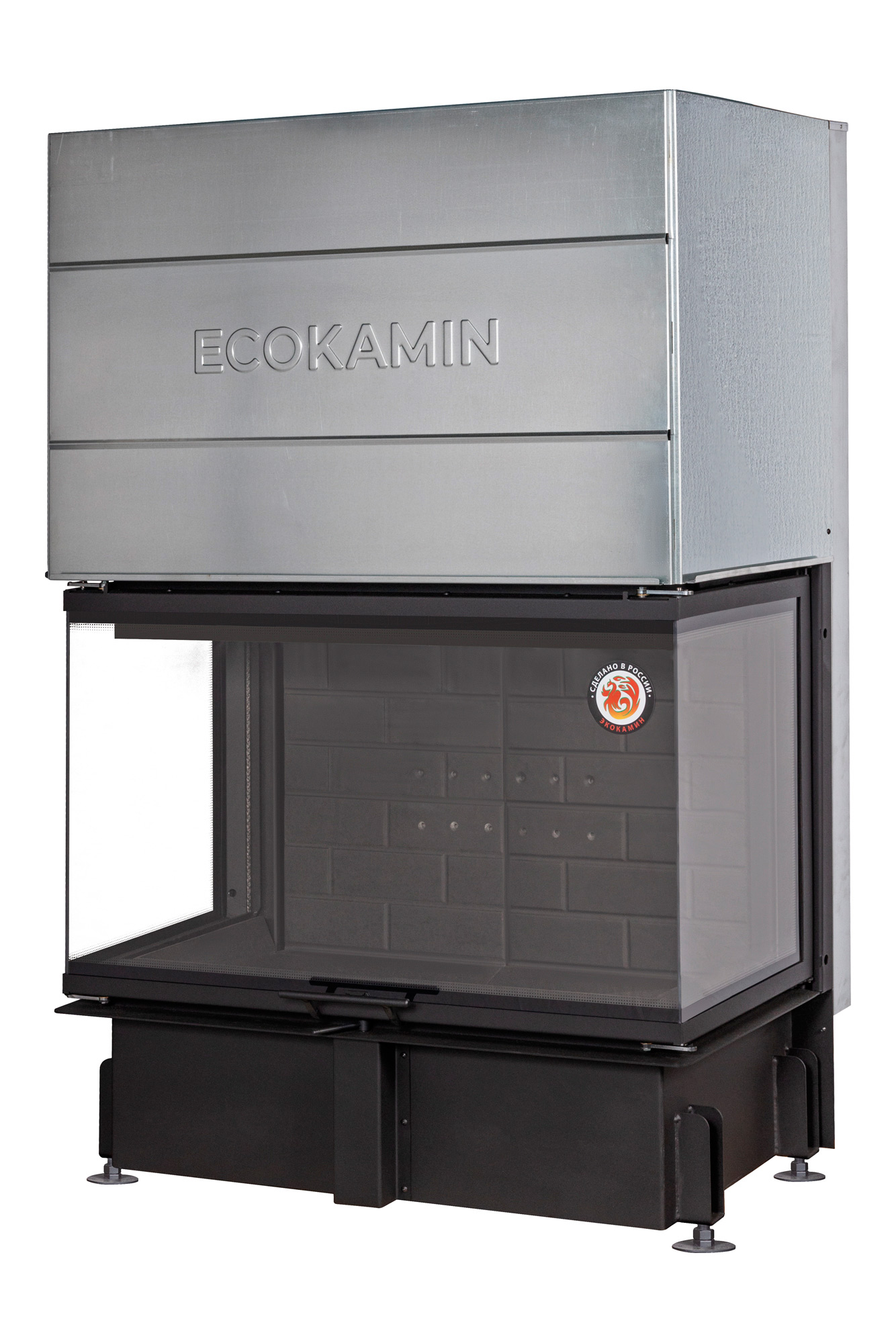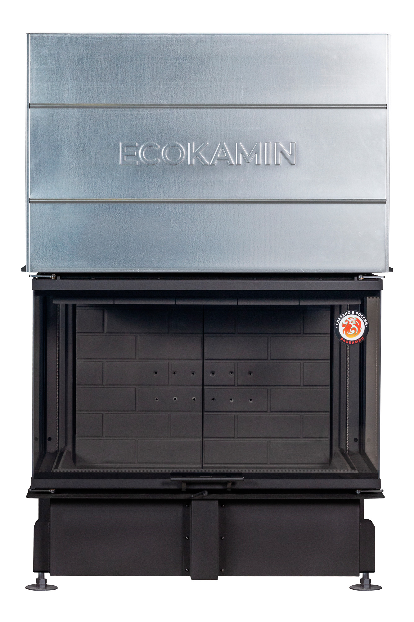 Каминная топка Экокамин Дельта 1000B три стекла принтинг черный шамот