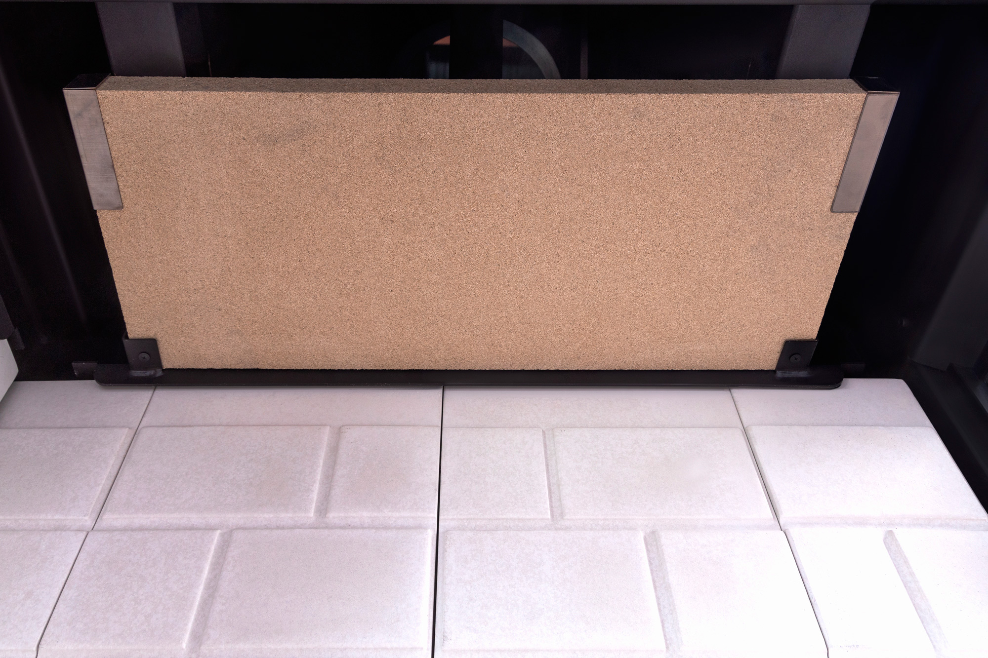 Топочная камера топки выполнена из высококачественной стали, которая покрыта термостойким лакокрасочным покрытием с антикоррозийными свойствами, что обеспечивает долгий срок службы устройства. Для дополнительной защиты топочная камера футерована литьевым шамотом, который доступен в черном или бежевом цвете. Это не только повышает надежность и термостойкость топки, но и помогает удерживать и распределять тепло внутри помещения.