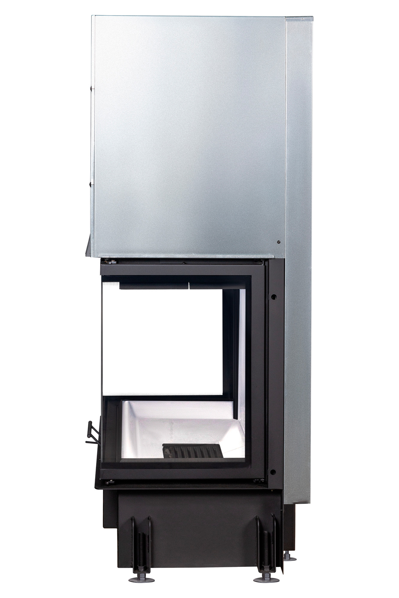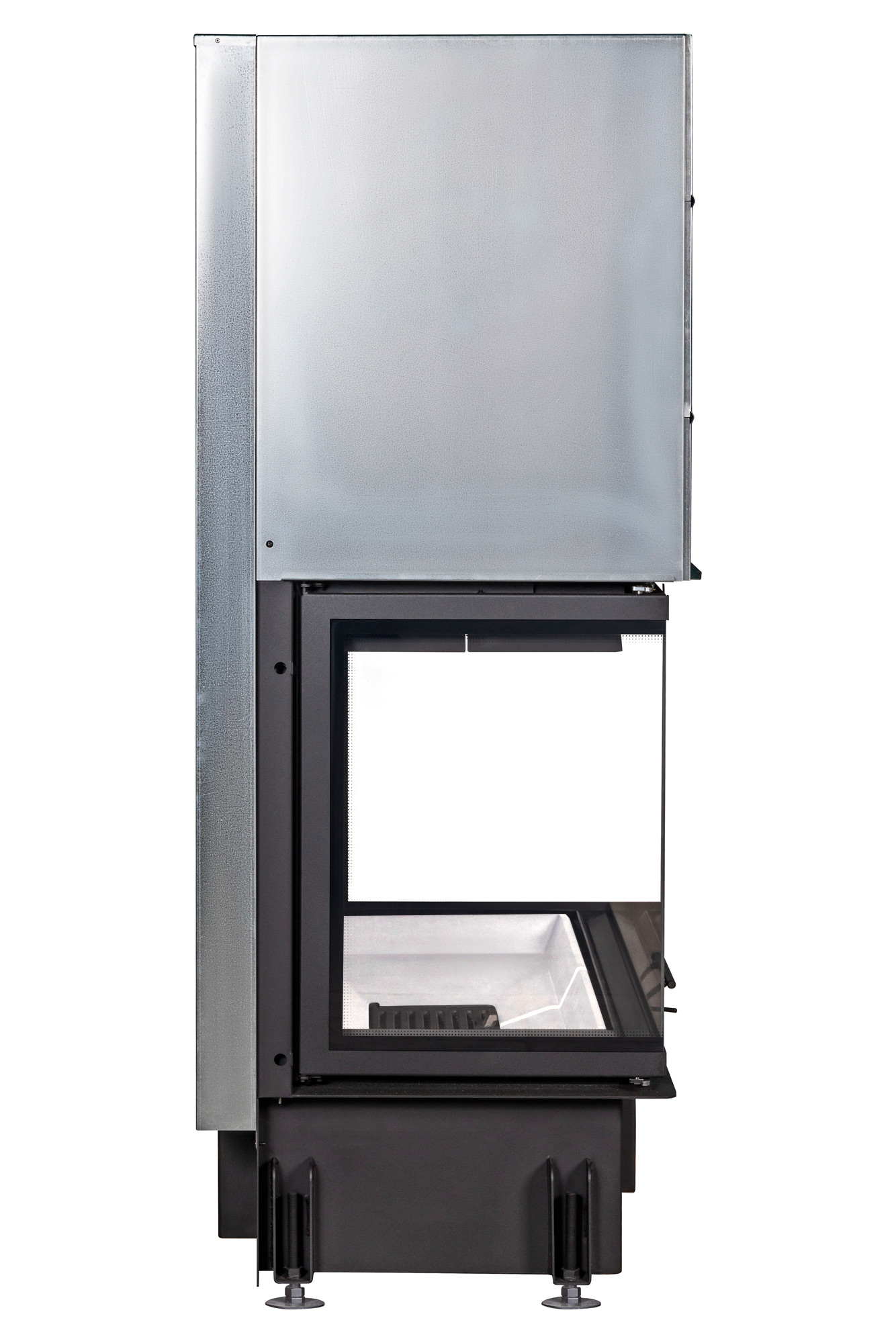 Панорамное остекление с принтингом добавляет топке стиль и изысканность. Трехсторонний вид топки позволяет наслаждаться видом пламени с любого угла комнаты, что делает ее идеальным элементом любого интерьера. Регулируемые по высоте ножки обеспечивают удобство монтажа, позволяя установить топку точно по уровню, создавая завершенный и гармоничный вид.