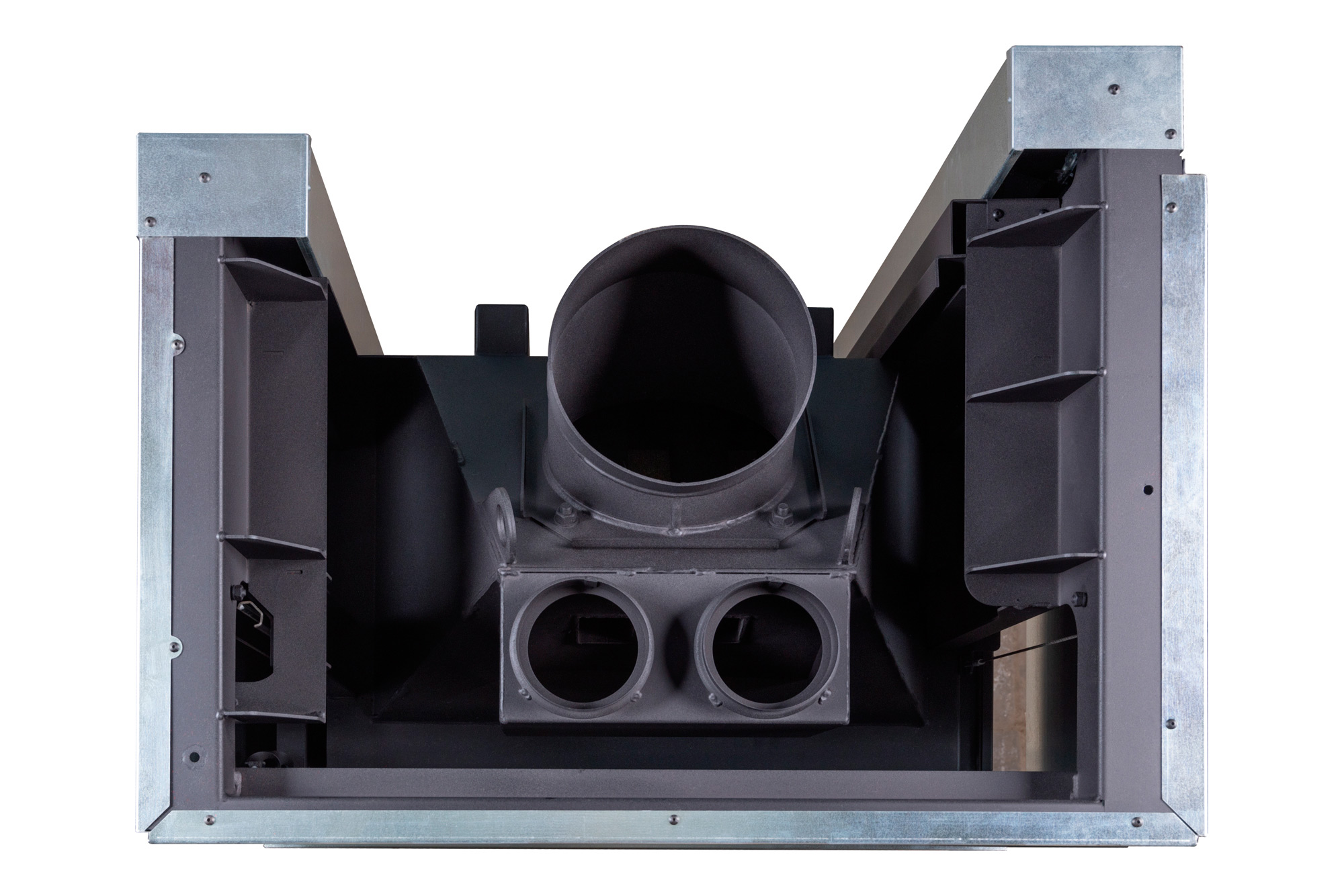 Корпус топки выполнен из высококачественной котельной стали, что обеспечивает долговечность и надежность. Термостойкое лакокрасочное покрытие защищает от коррозии, гарантируя продолжительный срок службы изделия. Ребра жесткости и встроенные тепловые каналы повышают теплоотдачу и обеспечивают равномерное распределение тепла по помещению. Топочная камера футерована литьевым шамотом, который надежно защищает металлические элементы от перегрева, предлагая выбор бежевого или черного цвета для футеровки, что позволяет подстроить дизайн под ваш интерьер.