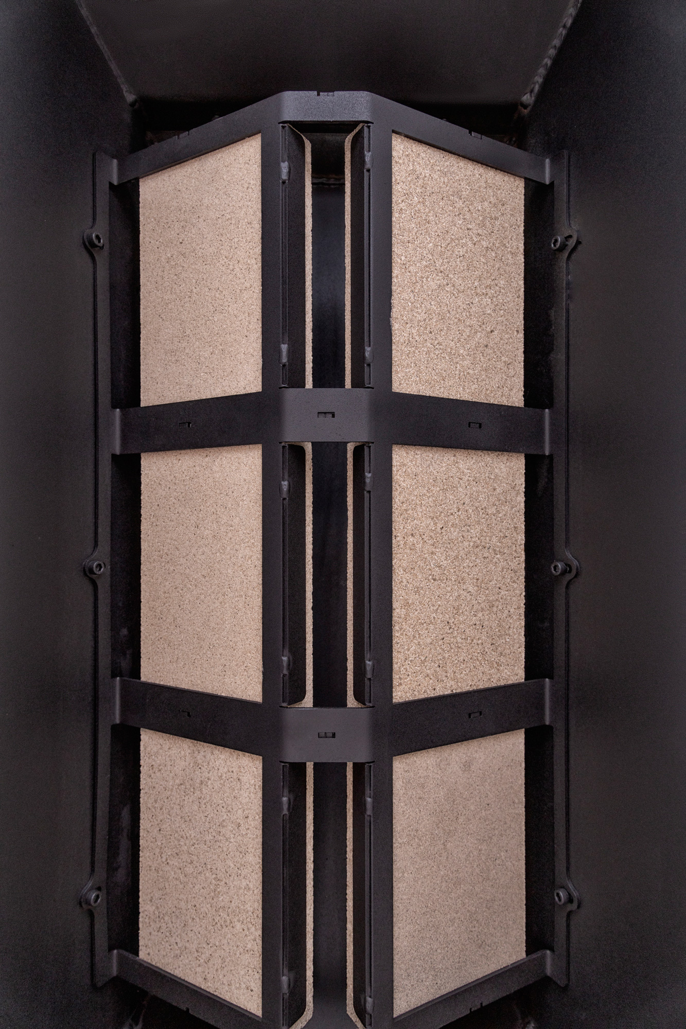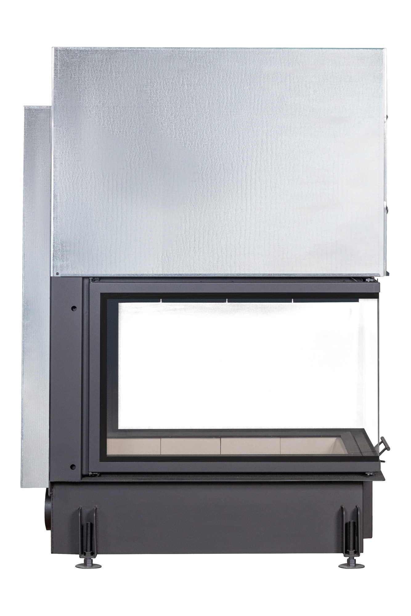 П-образное остекление с принтингом создает уникальный визуальный эффект, позволяя наслаждаться панорамным видом огня с нескольких сторон. Топка оборудована жаропрочным стеклом из Японии, которое выдерживает температуру до 750°C, гарантируя безопасность и долговечность эксплуатации. Литьевой шамот, доступный в черном или бежевом цветах, защищает металлические элементы топки и улучшает теплоемкость, делая процесс горения более эффективным.