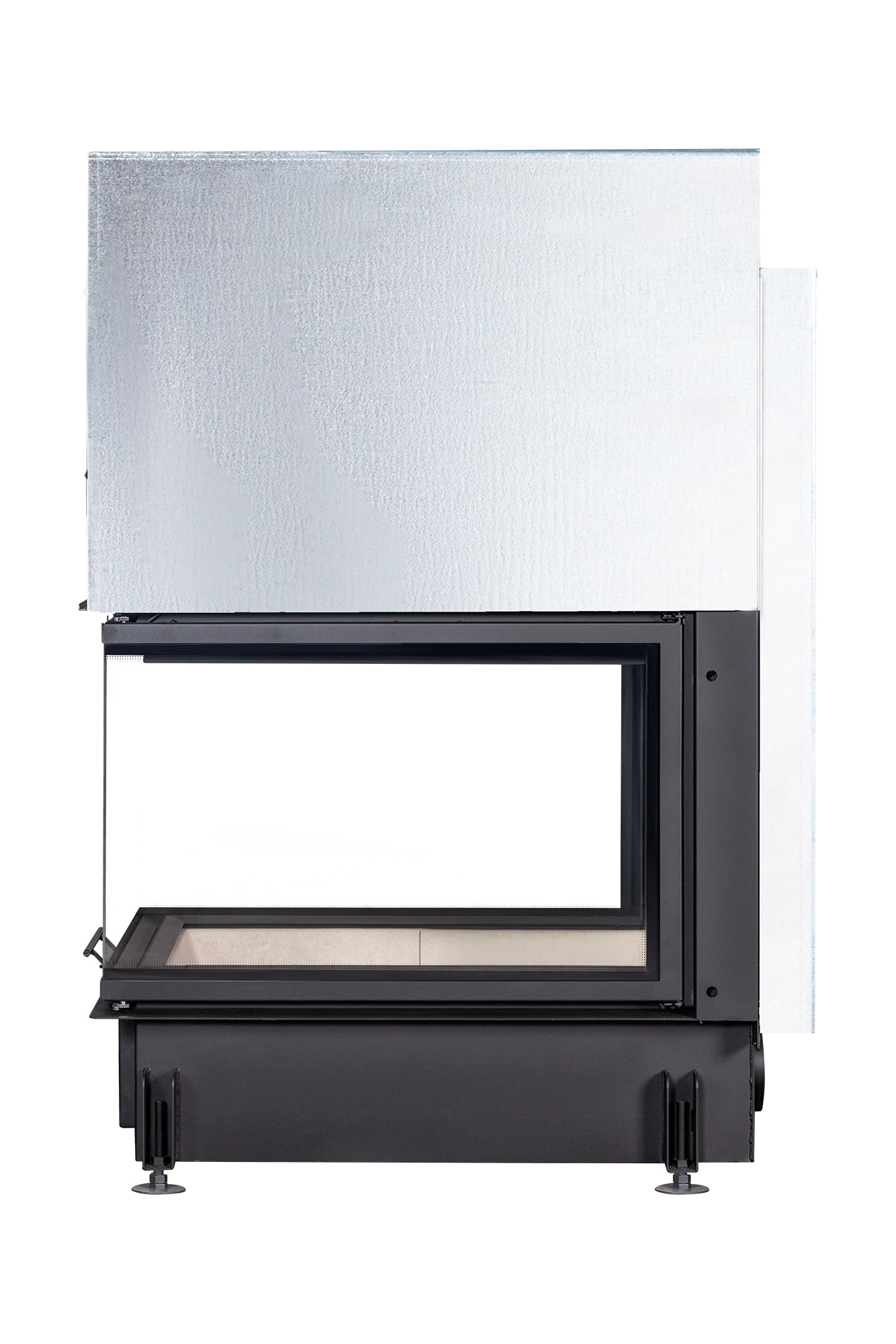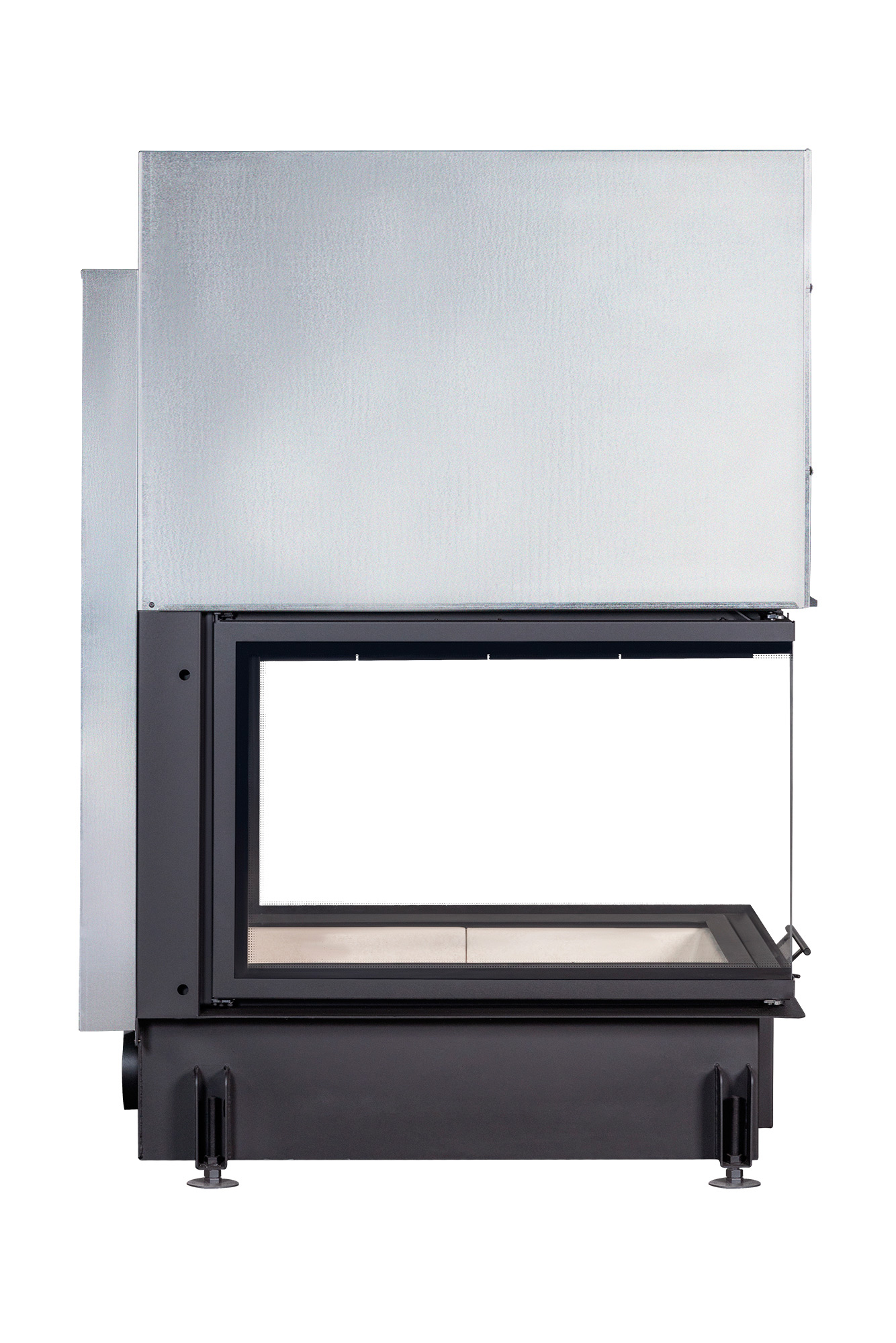 Топка оснащена бесшумной тросовой системой с противовесом и жаропрочными подшипниками, что позволяет легко открывать дверцу вверх для закладки дров. Система "чистое стекло" поддерживает стекло в чистоте, давая возможность любоваться пламенем без загрязнений. Большой зольный ящик под чугунной колосниковой решеткой делает процесс очистки простым и удобным. Регулируемые по высоте ножки позволяют установить топку по уровню, обеспечивая легкость монтажа.
