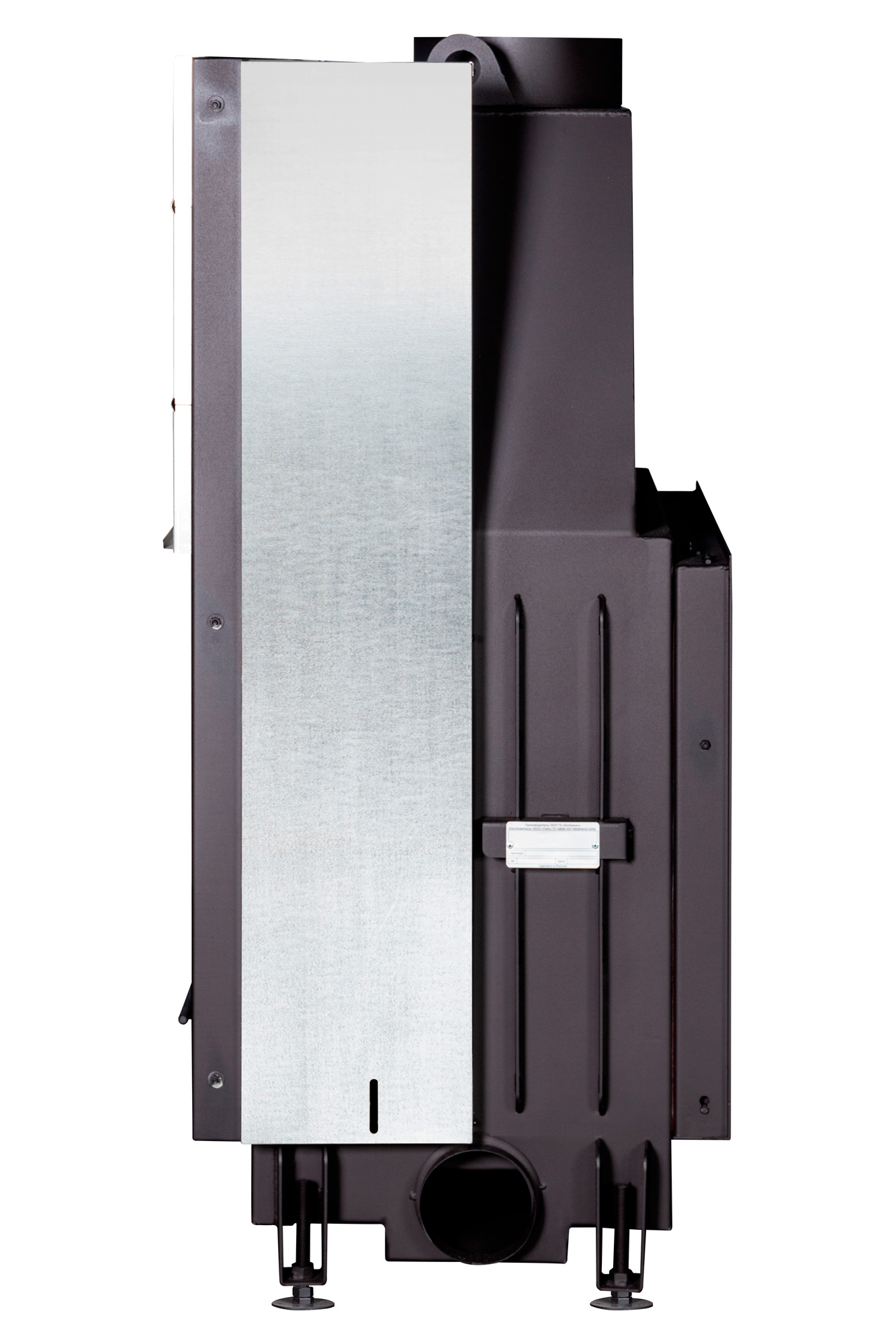 Высокий дымосборник и пламярассекатель помогают предотвращать попадание дымовых газов в помещение при открывании дверцы, а большой зольный ящик под чугунной колосниковой решеткой делает обслуживание более удобным. Регулируемые по высоте ножки упрощают монтаж и позволяют точно установить топку по уровню, что особенно важно для качественной и аккуратной установки.