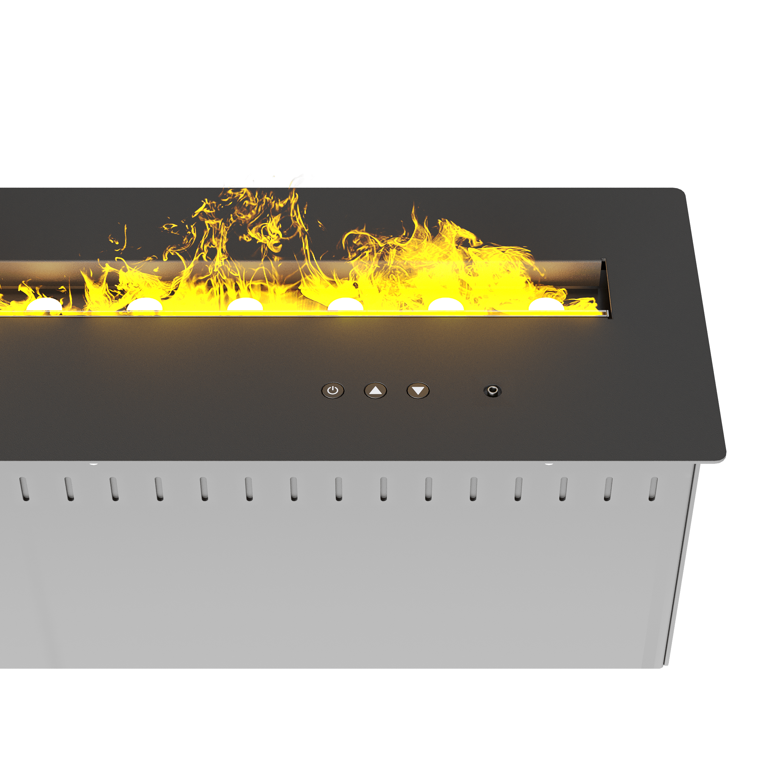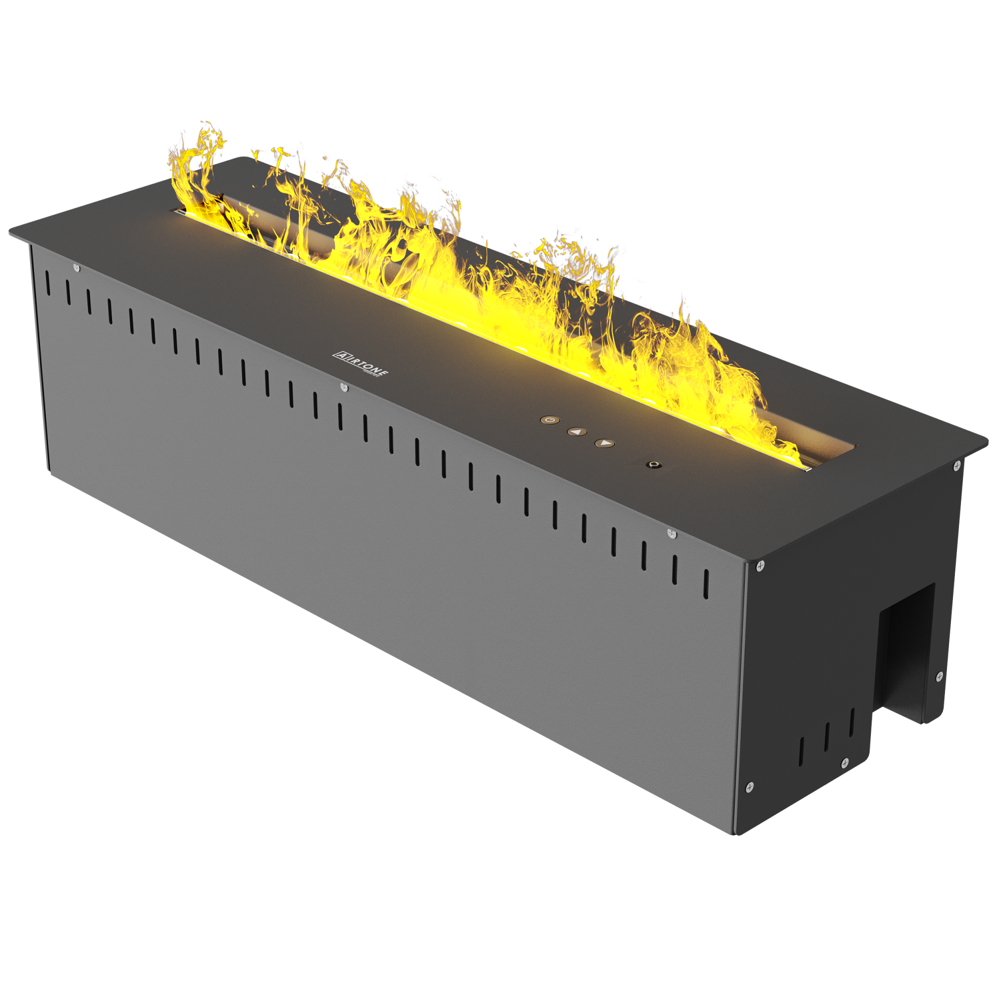 Управление сделано максимально простым: пульт ДУ и клавиши на камине. Только базовые функции — ровно то, что нужно, чтобы быстро включить эффект и выключить его, не разбираясь в меню и режимах.