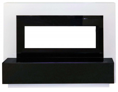 Портал Stockholm от бренда Royal Flame представлен в черно-белом цветовом решении. Фронтальная сторона дополнена выступающей вперед вставкой, которая может использоваться как дополнительное пространство для предметов декора.