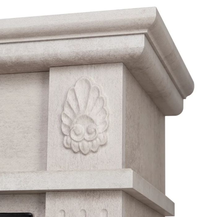 Практичность портала также является его важным преимуществом. Конструкция позволяет легко встроить подходящий электрический очаг, формируя полноценный каминный комплект. При этом портал можно быстро установить без сложных подготовительных работ, что делает его удобным решением для любого типа помещений.