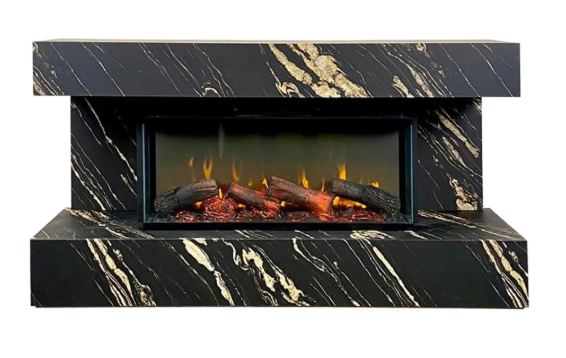 Портал Interflame Грейт в оттенке «Чёрный Порторо Голд» — это воплощение роскоши и геометрической чёткости. Его глубокий чёрный цвет с прожилками, имитирующими элитный мрамор, подчёркнут матово-золотыми акцентами, создавая впечатляющее сочетание.