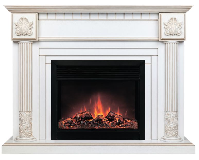 Портал для электрокамина Real Flame Imperia 33/26 WT выполнен из высококачественного МДФ, покрытие шпон в цвете белый дуб с выразительной текстурой натурального дерева. Главное украшение этого портала - объемные колонны с резными растительными узорами. Декоративные элементы покрыты золотой патиной, что придает изделию эффект изысканной старины.