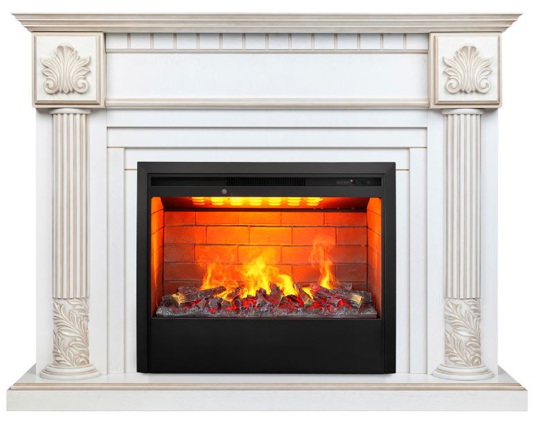 Портал для электрокамина Real Flame Imperia 33/26 WT выполнен из высококачественного МДФ, покрытие шпон в цвете белый дуб с выразительной текстурой натурального дерева. Главное украшение этого портала - объемные колонны с резными растительными узорами. Декоративные элементы покрыты золотой патиной, что придает изделию эффект изысканной старины.