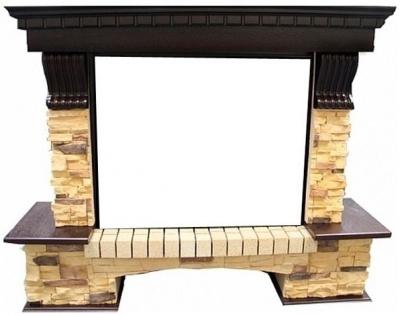 Портал для электрокамина ROYAL-FLAME Pierre Luxe угл. Сланец под очаг Dioramic 25 FX, темный дуб