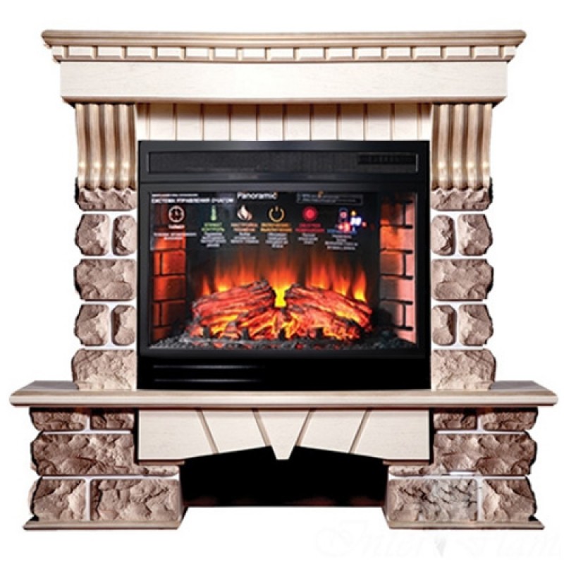 Портал для электрокамина INTER-FLAME Экстер Кавказ под Panoramic 25 бежевый с патиной