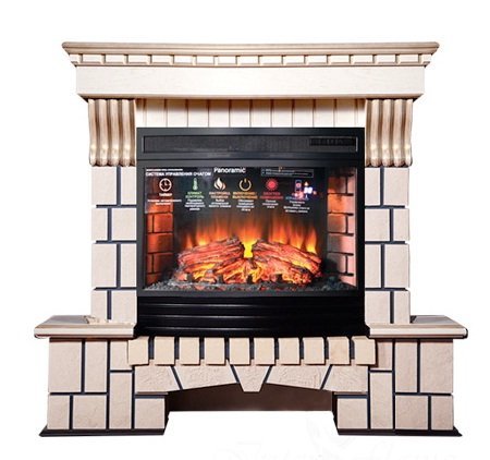 Электрический камин Экстер (Exter) давно зарекомендовавшая себя модель, в сборе с современным очагом, последнего поколения Panoramic 25 LEDFX QZ, Очаг обладает потрясающим эффектом пламени и муляжом дров расположенных за панорамным фронтальным стеклом. С помощью регулятора яркости огня можно задать желаемую яркость пламени (5 уровня регулировки). Инфракрасный обогреватель (3 трубки, а не как у аналогов 1), спрятан в верхней части очага и обеспечивает обогрев в холодную погоду. Инфракрасный обогреватель является самым современным способом обогрева и обладает рядом преимуществ, такими как: практически не сжигает кислород, высокая скорость обогрева, отсутствие запаха и экономия электричества.